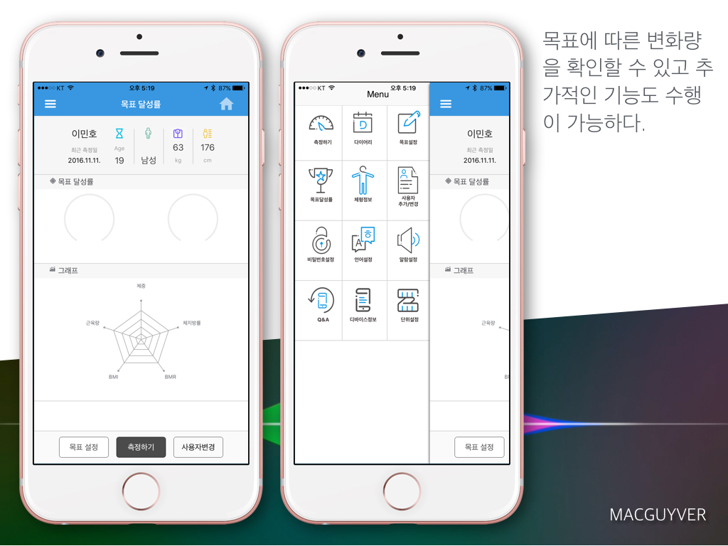이러한 정보들에 더해 사용자가 입력한 몸무게나 키 등의 정보들을 취합해서 무려 54가지에 이르는 체형을 판독하고 그에 맞춰서 다양한 음식부터 운동을 추천해주고 개인별 목표를 설정할 수 있도록 도와준다.