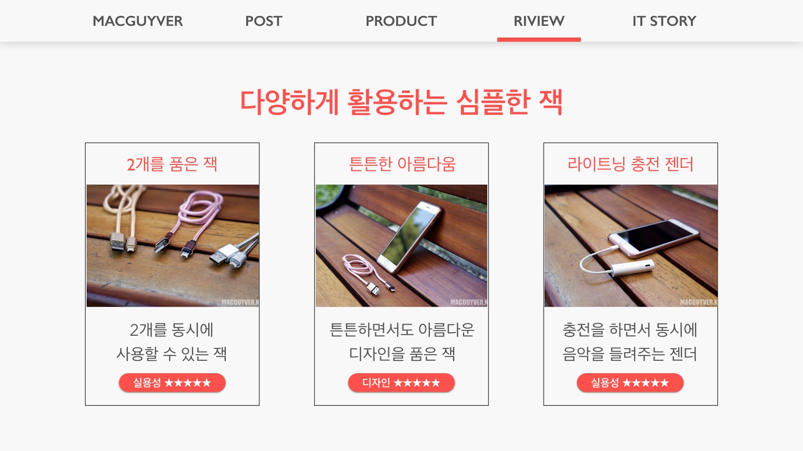 아무튼, 적어도 기존의 수많은 마이크로 USB 단자와 애플의 라이트닝 단자를 하나로 사용할 수 있는 잭의 등장은 매우 반갑다. 그리고 충전하며 음악을 듣게 해줄 젠더의 등장도 반길 일이다. 너무 기쁜 마음에 하나씩 챙겨뒀으니 꼭 챙겨가자. - MACGUYVER.