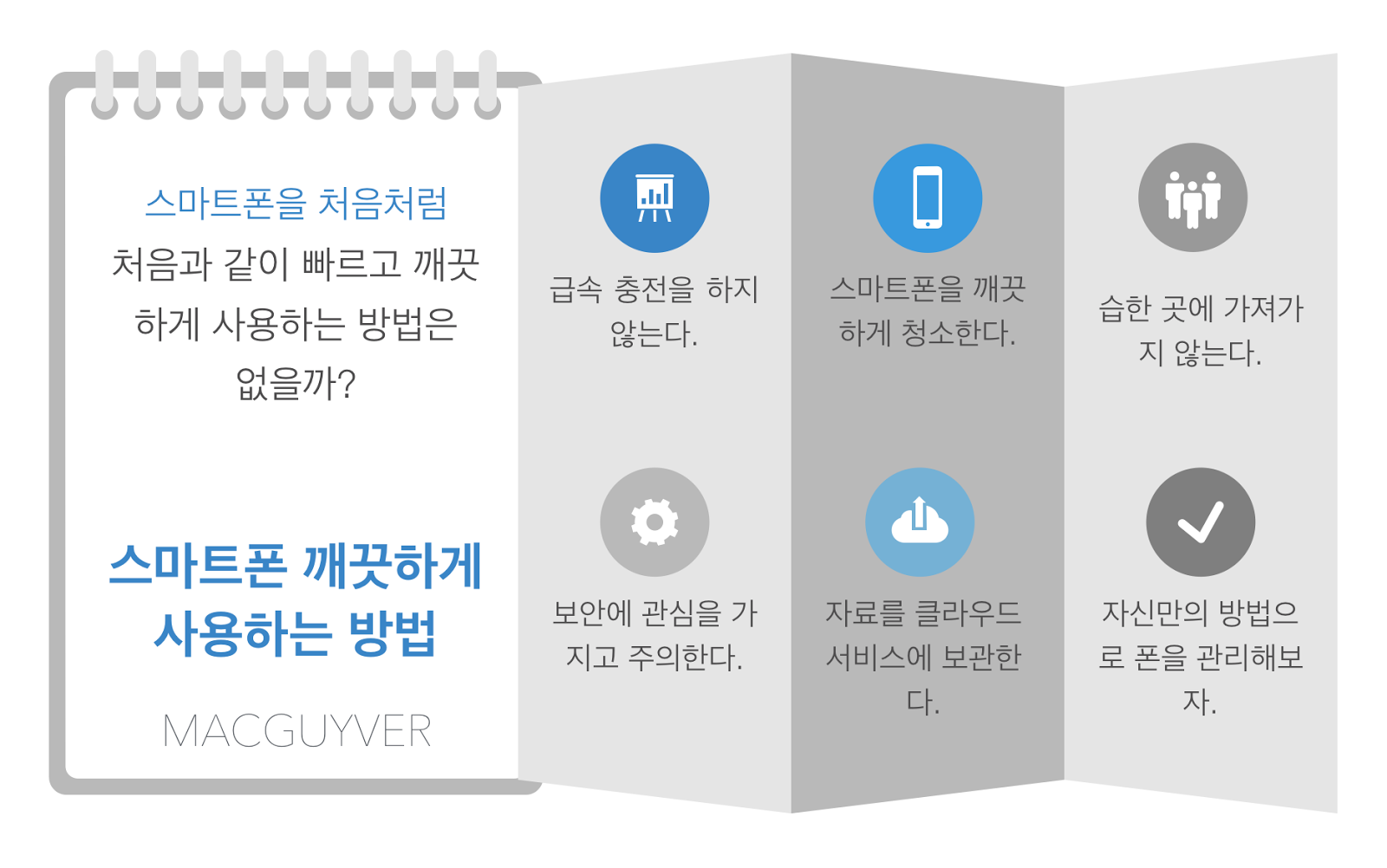 자신에게 필요한 요점만 골라서 적용해보자. 생각보다 쉽고 간단하기 때문에, 당장 할 수 있는 일부터 해보고 적용한다면 어느새 더욱 빨라지고 쾌적해진 스마트폰을 만나게 될지도 모르겠다. - MACGUYVER.