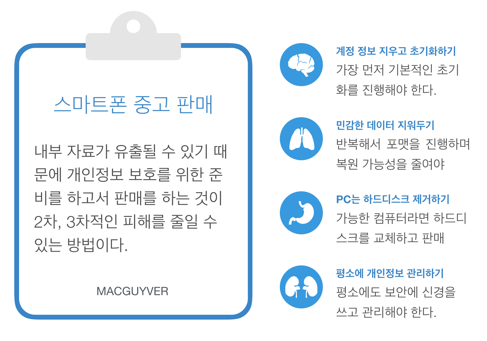 여전히 많은 사람들은 중고폰을 거래할 때 초기화를 하지 않고 판매하거나, 심지어 계정 로그아웃도 하지 않은 채 판매를 해서 개인정보가 유출되는 경우도 상당히 많았다. 물론, 분실로 인해 거래되는 중고폰에서도 개인정보는 얼마든지 유출되고 있는 상황이다.