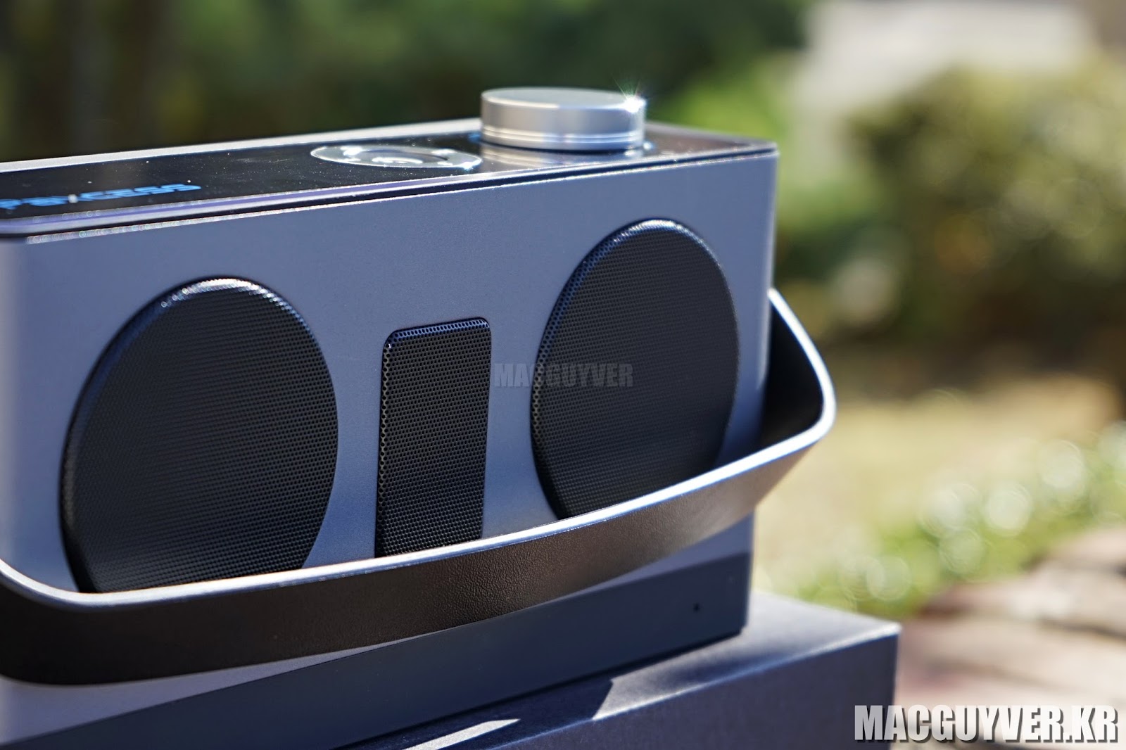 또한 전면에 있는 두 개의 스피커 그릴의 완성도도 높았고, 전후면과 상단부 디자인 역시 마감이 매우 훌륭했다. 상단의 팍시스 로고가 있는 부분은 하이글로시 디자인으로 반짝임을 더했고, 볼륨 조절을 위한 휠은 고급 음향 기기의 그것과 같은 묵직함이 전달되었다.