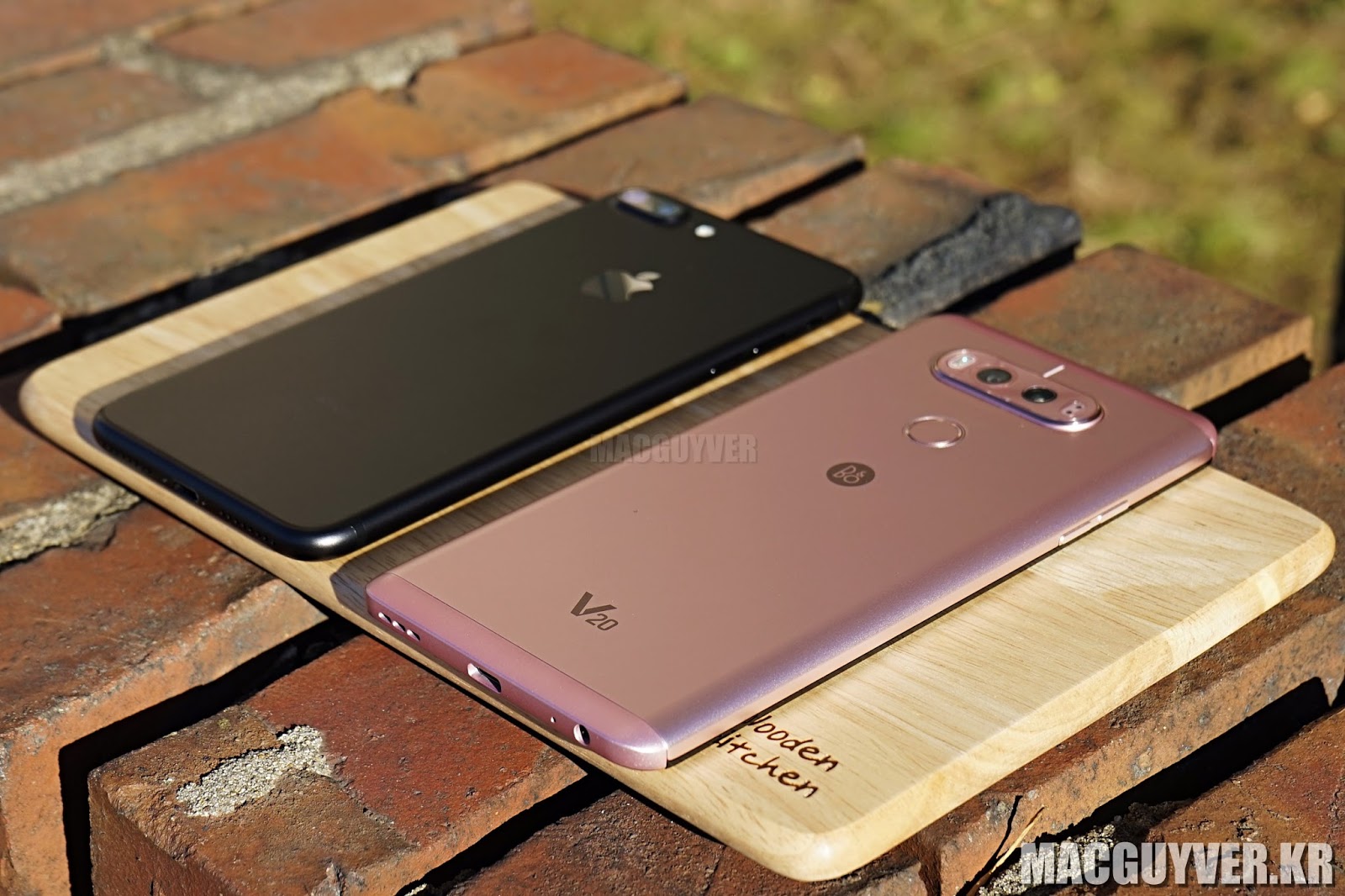 그러나 V20 역시 매력이 낮은 것은 아닌데, 뚜렷한 특색을 갖추고 있기 때문에 탈착식 배터리를 비롯해 고음질, 튼튼한 디자인과 광각 촬영이라는 점에서 나름의 매력을 더하고 있는 상황이다. 굳이 따지자면 V20가 75점, 아이폰7 플러스가 87점 정도.