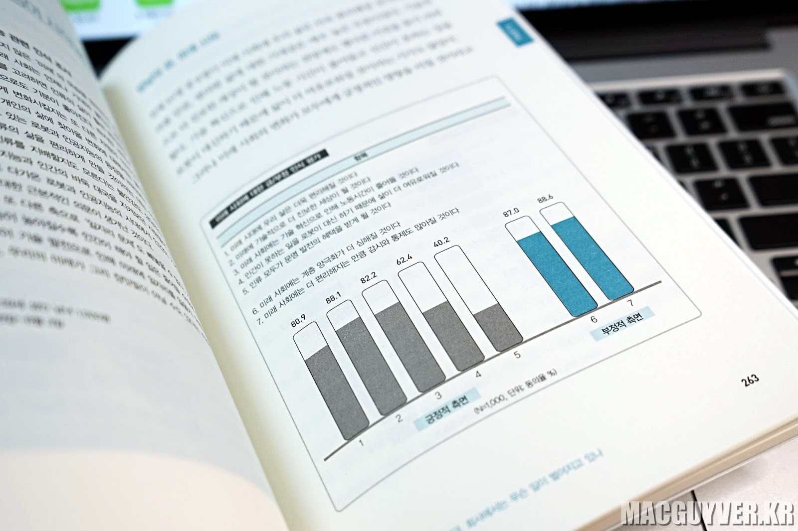 일반적인 도서가 서술형으로 길게 나열하는 방식을 취했다면, 2017 대한민국 트렌드 도서는 하나하나의 내용들을 보다 심층적으로 분석하고 쉽게 쉽게 읽을 수 있도록 구성이 되어 있다. 그래서 읽는 내내 책을 읽는다기보다는 다양한 자료들을 보기 좋게 취합해서 정리가 된 표를 읽는다는 느낌이 들어서 읽기가 쉬웠다.