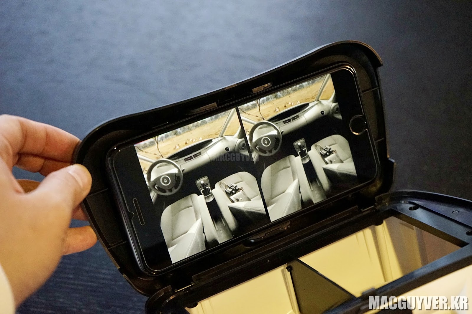 또한 저렴한 싸구려 렌즈를 사용하는 대신, 33.5mm에서 43.5mm로 바뀐 옵티컬 렌즈를 통해 시력을 보호하도록 만들어졌는데, 유럽에서 직수입된 렌즈로서 8번의 나노 코팅과 9번의 광택 공정으로 제작되어서 눈의 부담을 덜어주도록 디자인되었다. 그리고 빡빡하지 않은 거치대를 통해 폰을 거치할 때의 불편함 역시 해결한 점이 인상 깊었다.