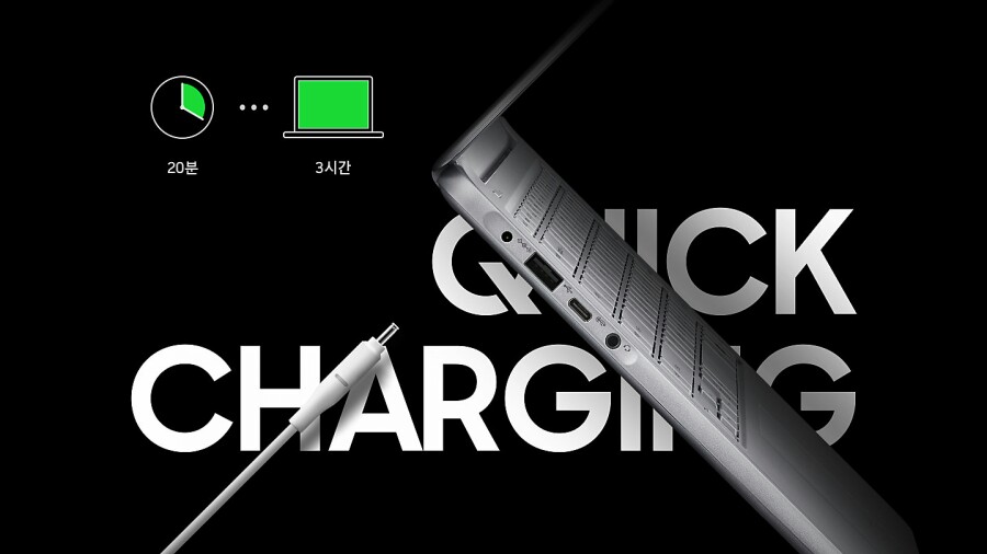 앞서 살펴봤듯, 10W의 보조배터리라면 삼성 노트북9 Always를 충전할 수 있고, 45W 충전기로는 20분 만에 3시간 동안 사용할 수 있는 배터리를 충전할 수 있으며, 80분 만에 완충이 가능하다.