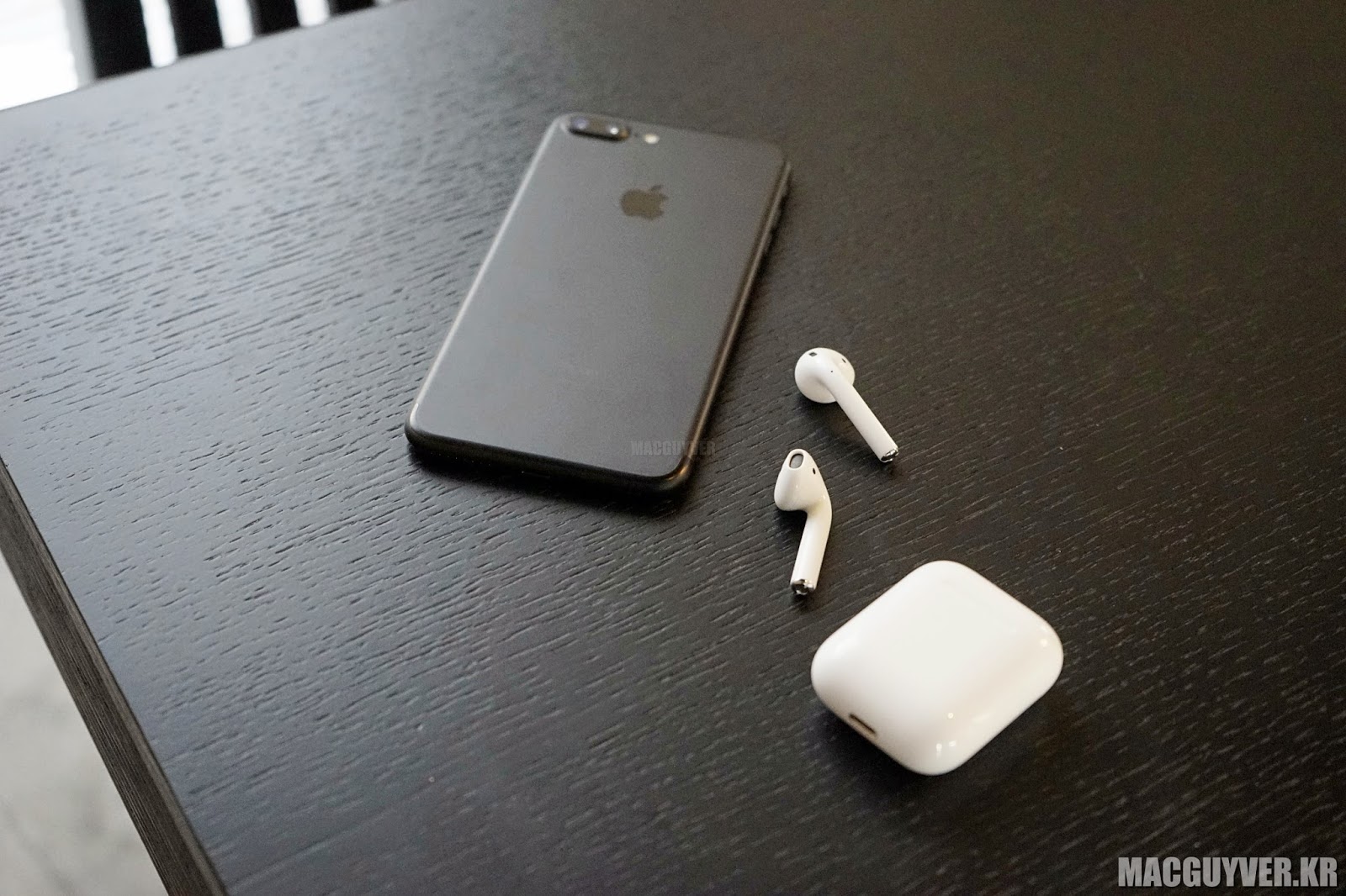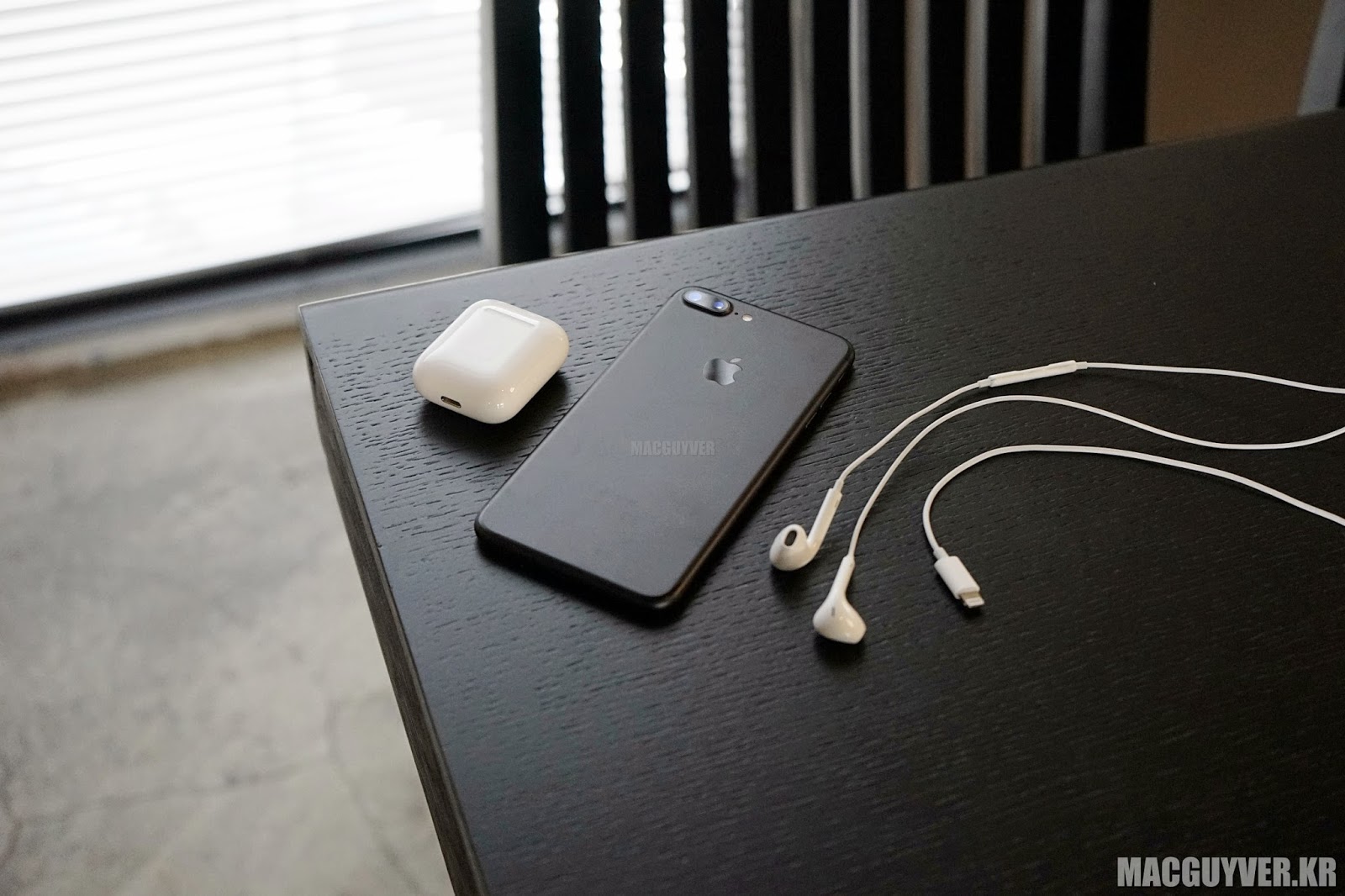 아이폰7과 함께 사용하라면서, 에어팟은 아이폰7과 함께 비를 맞으며 걷지는 못하는 친구가 되어버렸다.