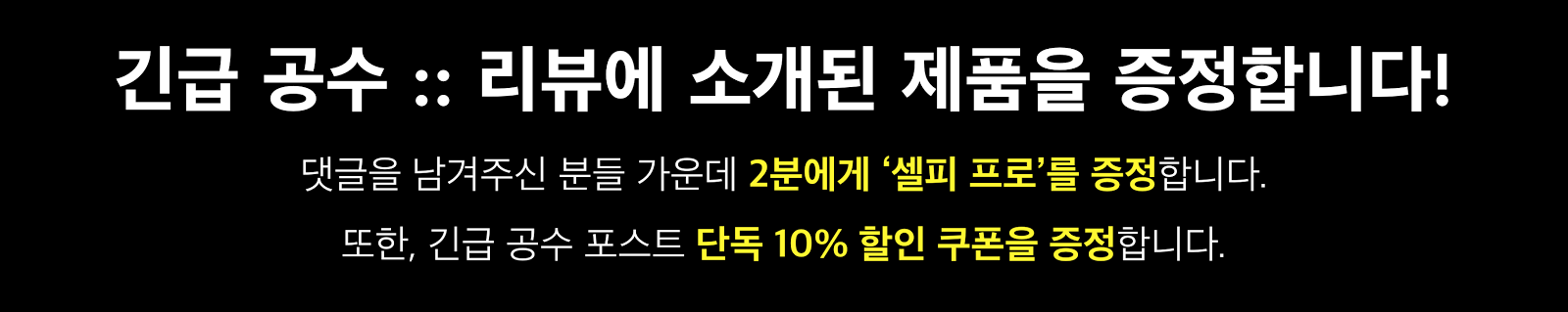 특히나 셀피 프로를 찾았던 분들이라면, 할인 쿠폰까지 단독으로 공수했기 때문에 적극 활용해볼 것을 추천한다. - MACGUYVER.