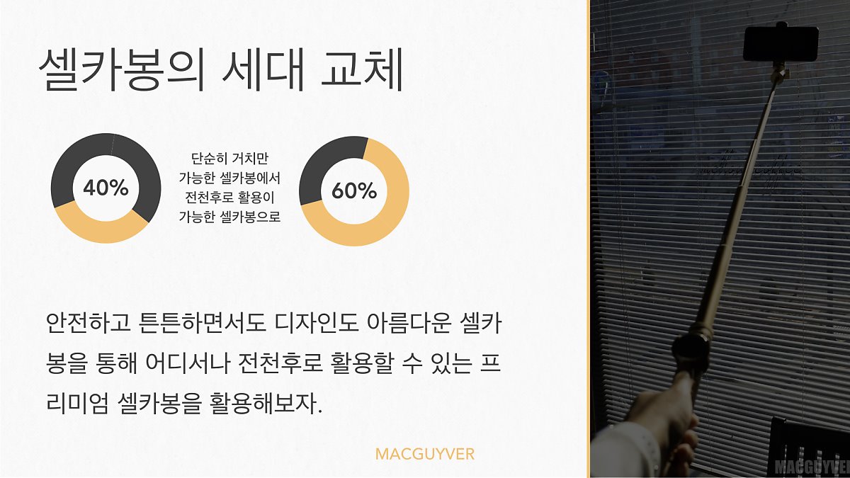 마치, 여전히 시중에는 1만 원도 채 안되는 저렴한 케이스가 존재하지만, 여전히 5만 원에서 10만 원대 케이스도 존재하듯, 기기를 보호하는 역할 그 이상의 목적이 뚜렷한 고급 셀카봉은 그 자체로도 분명 나름의 장점이 뚜렷하기 때문이다.