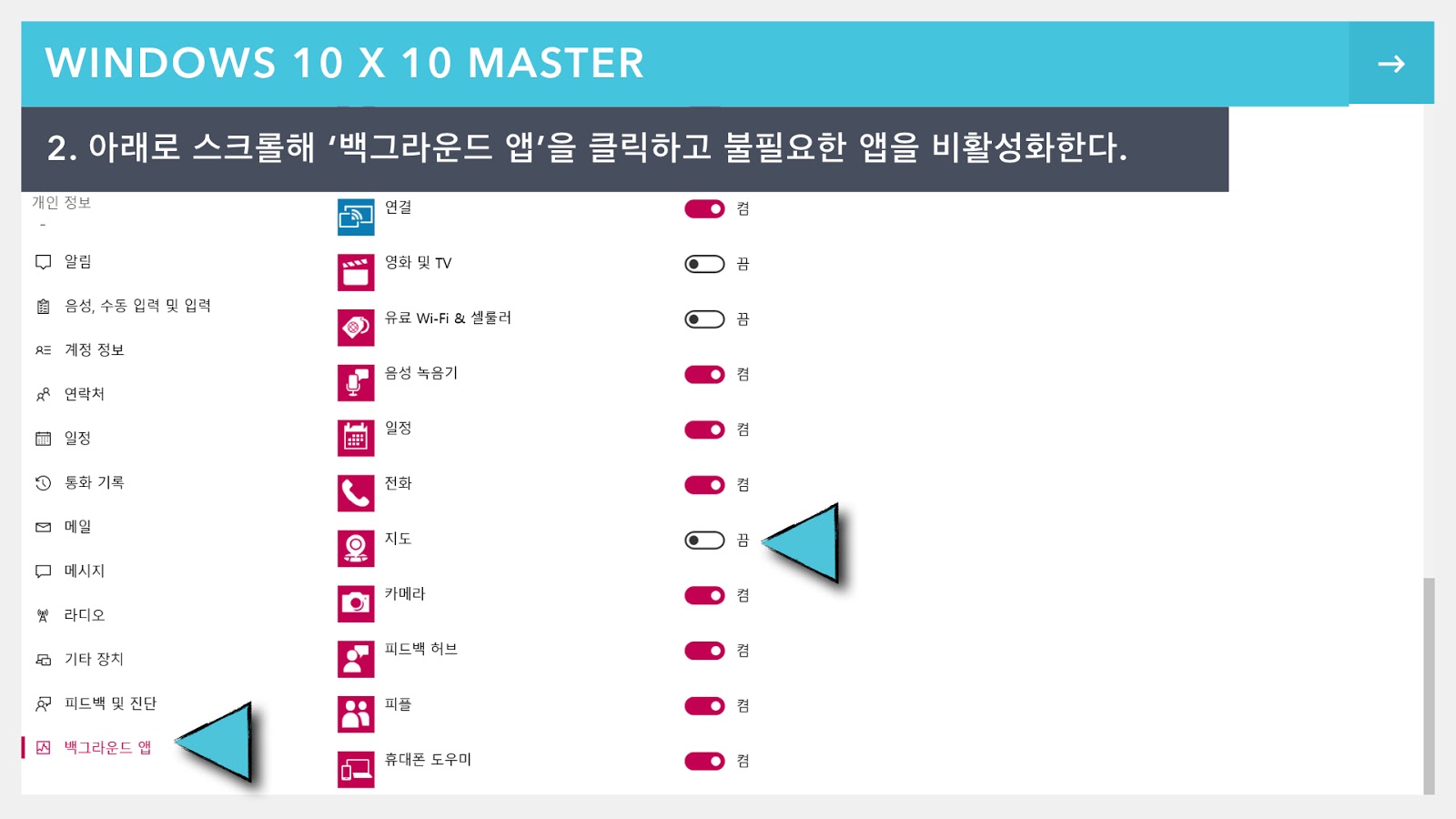 윈도우10 백그라운드 앱 비활성화하는 방법