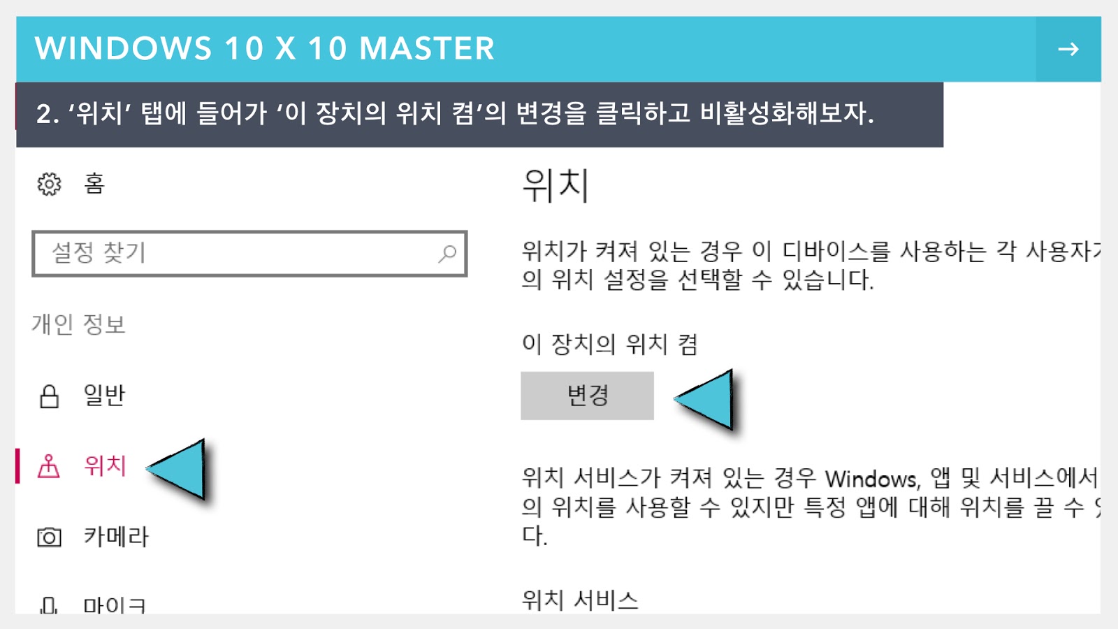 위치 서비스 설정에 접근하는 방법