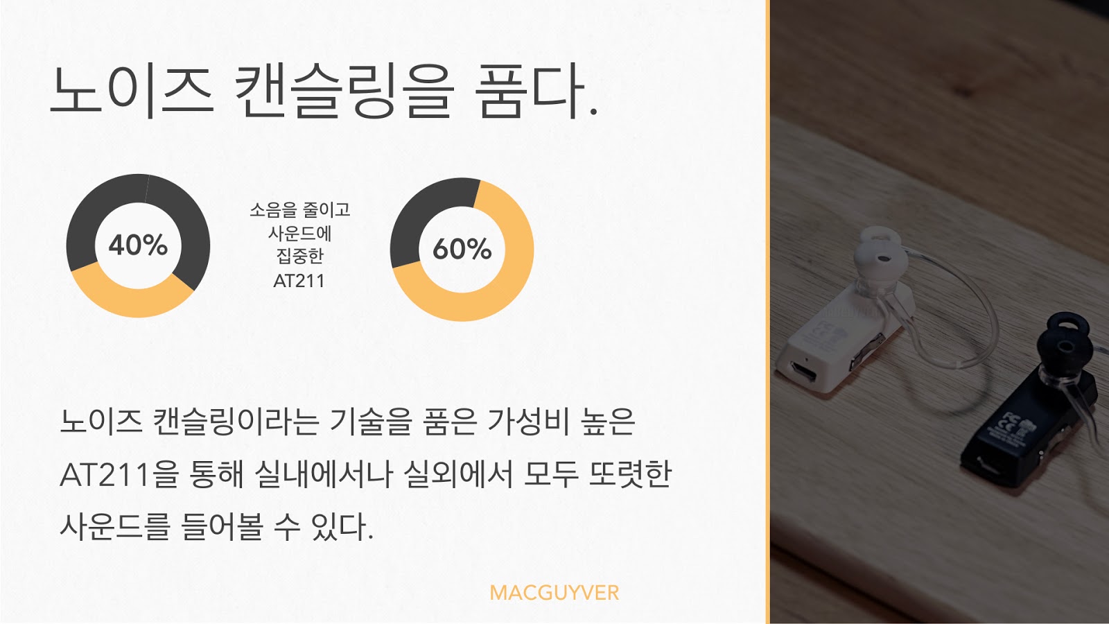 그럼에도 스테레오 사운드가 불가능한 것이 아닌, 가능하다는 점에서 신선한 시도라는 것이 느껴졌던 AT211의 스테레오 사운드. 전천후로 사용하기에 부족함이 없는 2만원대 및 7g의 무게를 지닌 AT211 블루투스 헤드셋을 통해 편의성도 높이고 음악 감상까지 모두 활용해볼 것을 추천한다. - MACGUYVER.