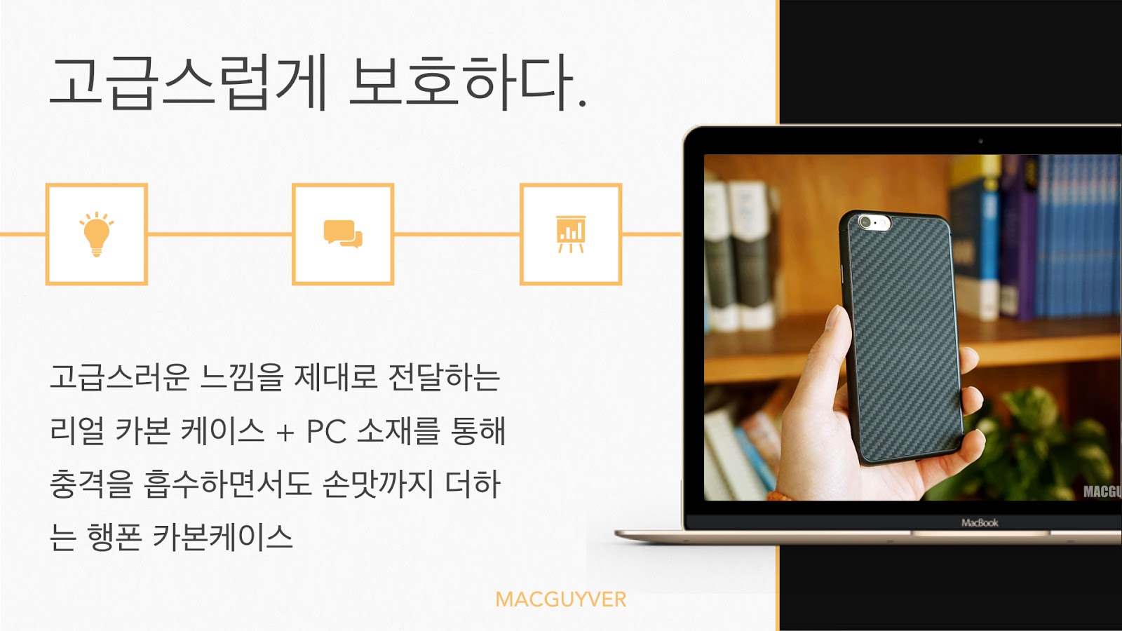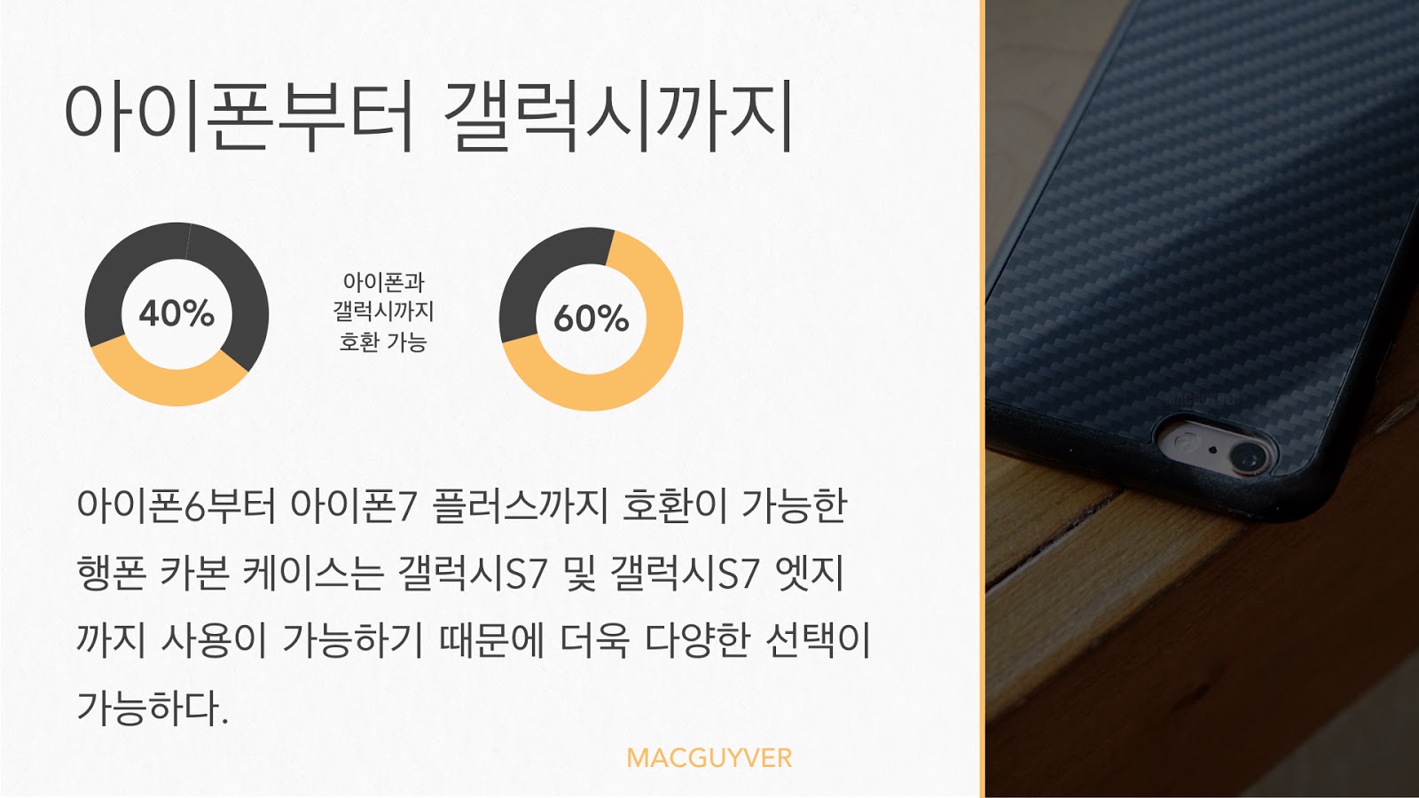 아이폰6 시리즈부터 아이폰7 및 갤럭시S7과 갤럭시S7 엣지까지도 사용이 가능한 카본 케이스로, 기존의 카본 케이스가 지닌 단점을 모두 장점으로 만든 독특한 케이스라는 점에서 매력 포인트는 충분했다.