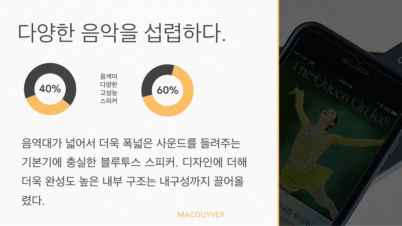 그러나, 이러한 감성을 누려보려 하더라도 음질이 좋은 스피커는 필수적이고 거기에 더해서 휴대성이 높을 필요도 있다.