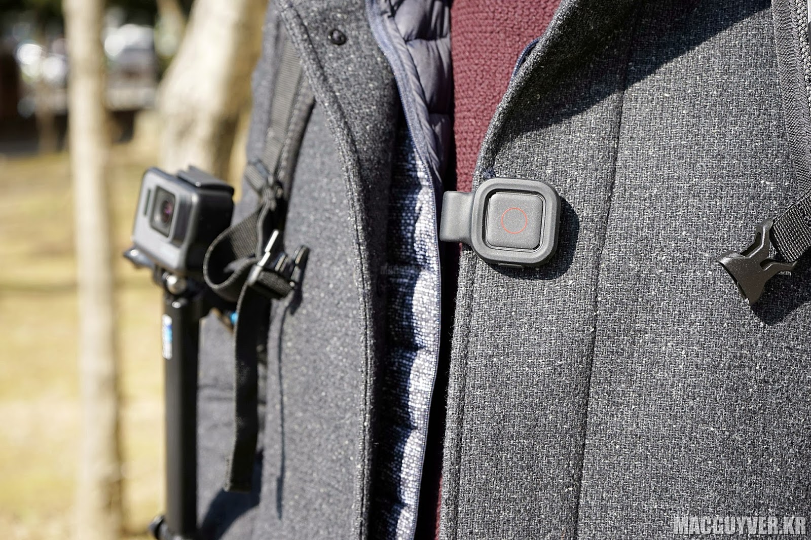 그래서 고프로를 가방끈에 연결하거나, X모양으로 가슴에 고정을 시켜두거나, 고프로의 다양한 그립을 그대로 활용해서 고정을 하거나, 원하는 위치로 촬영하는 것까지도 문제없이 수행이 가능했다.