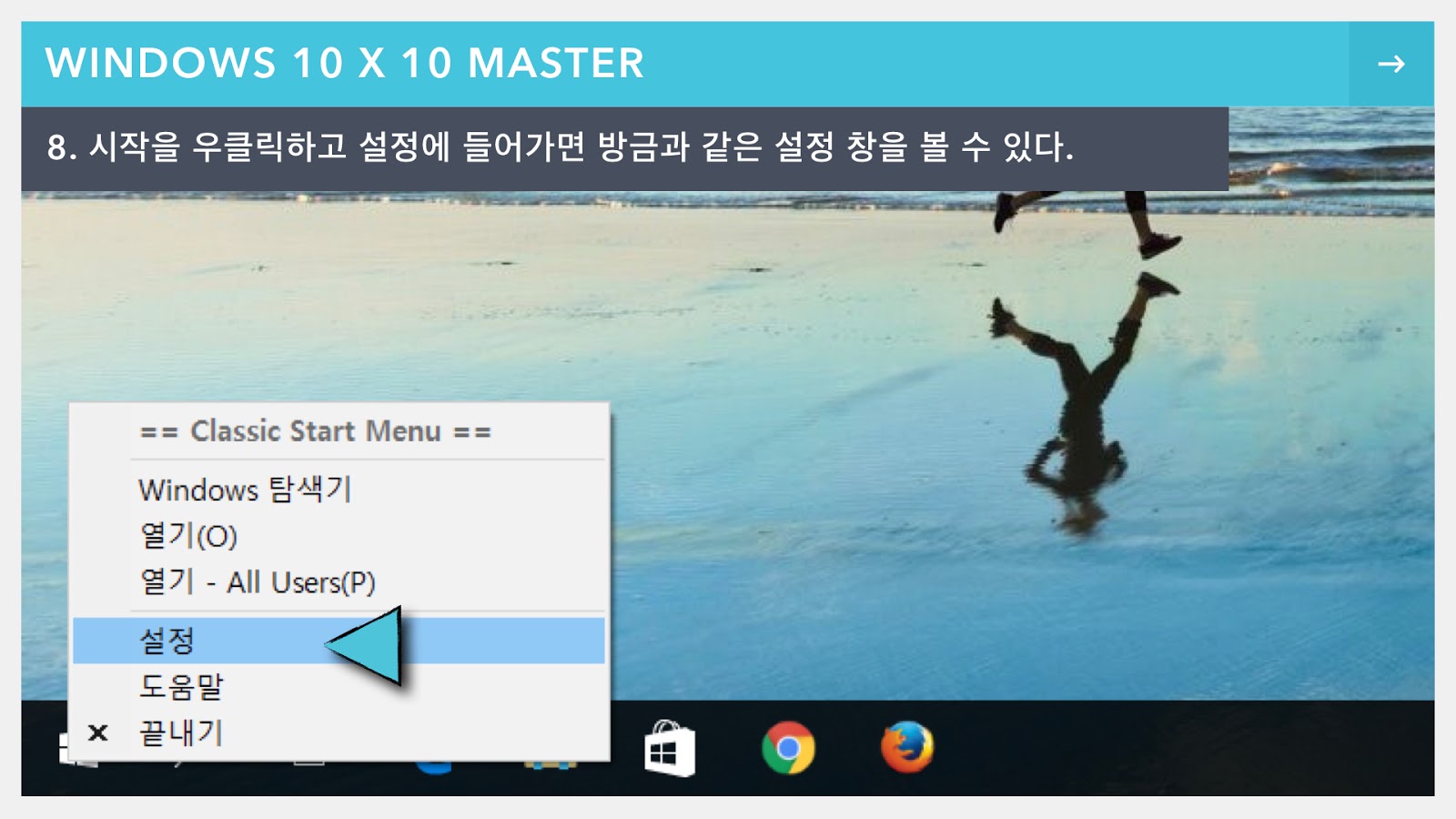 그리고 앞서 언급한 것처럼, 윈도우10의 인터페이스는 기본적으로 더 생산적이고 효율적인 작업을 위해 개선된 것이기 때문에, 윈도우10의 기본 인터페이스에 익숙해지는 것도 연습해볼 만할 것이다. - MACGUYVER.