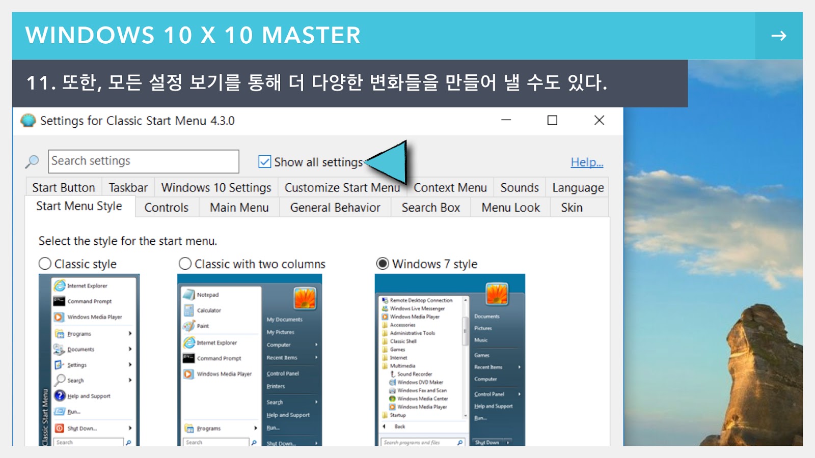 윈도우10 자체적으로 시작의 디자인을 변경할 방법이 있다면 좋겠지만, 아쉽게도 별도의 앱을 이용해야 한다. 바로 ‘클래식 쉘’이라는 이름의 프로그램인데, 꽤나 유명한 앱이라 주위에 누군가가 사용하고 있는 것을 한 번쯤 봤을지도 모르겠다.
