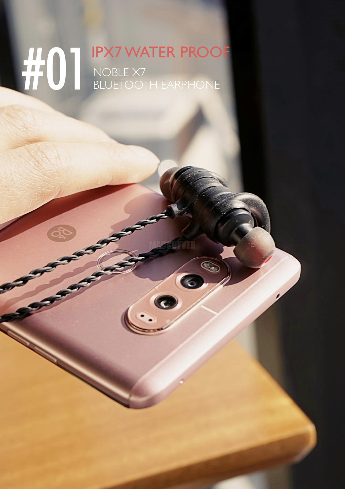 기존의 방수 이어폰이 보여준 아쉬운 방수 성능과 반쪽에 불과한 음질을 효과적으로 개선하며 진정한 완전방수 이어폰이 된 노블X7. APT-X를 통한 고음질, CVC 6.0을 통한 노이즈 제거와 마그네틱 및 트위스트 디자인으로 실용성과 내구성까지 겸비하고 있는 제품이었다.