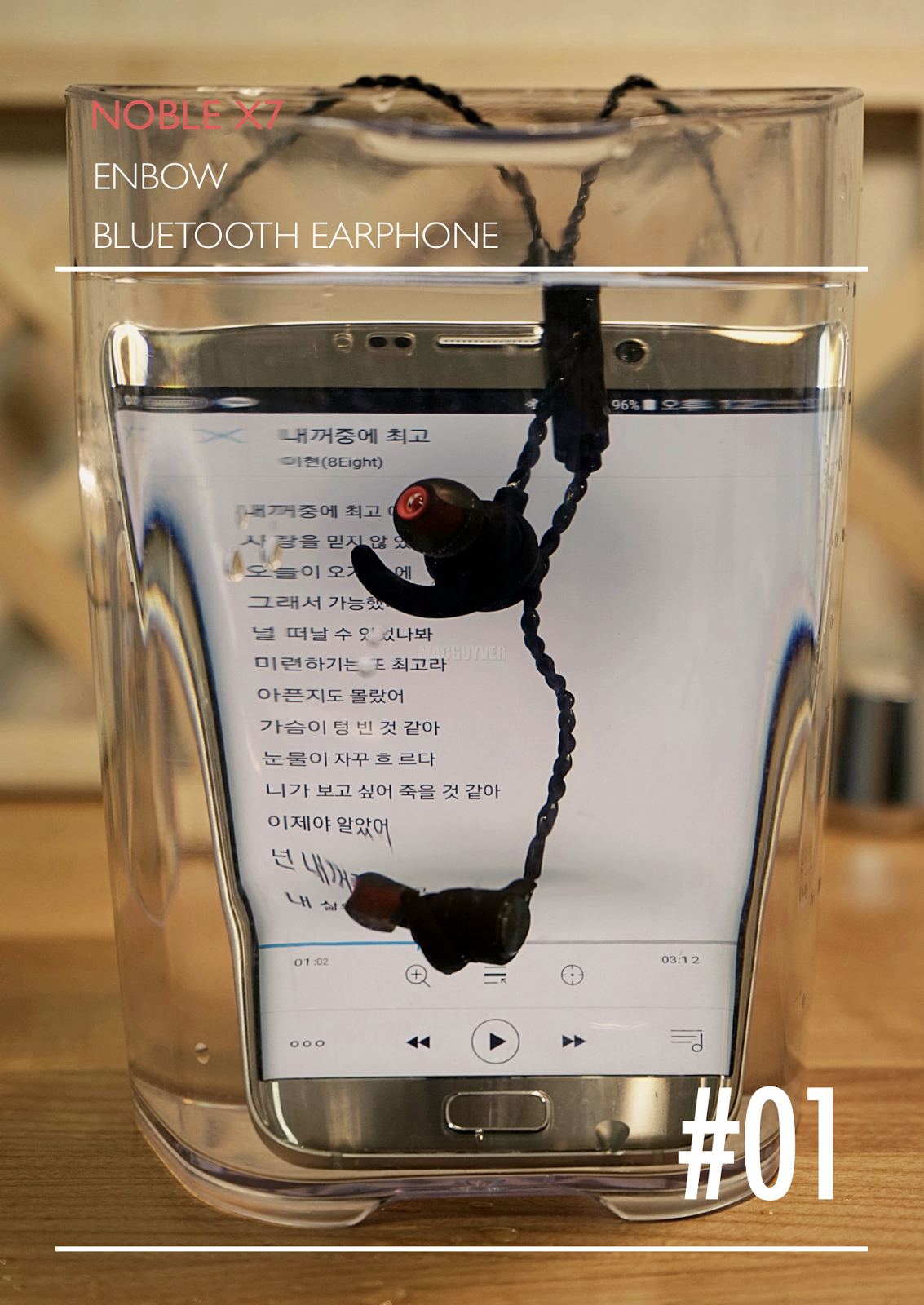 쉽게 말해서 전혀 문제가 없는 수준이었다. 갤럭시S7과 함께 물에 넣어본 노블X7은 IPX7 규격의 완전방수답게 물에서도 작게나마 소리가 들렸고 물에서 꺼낸 이후에는 툭툭 털어주기만 해도 소리가 제대로 전달되었다.