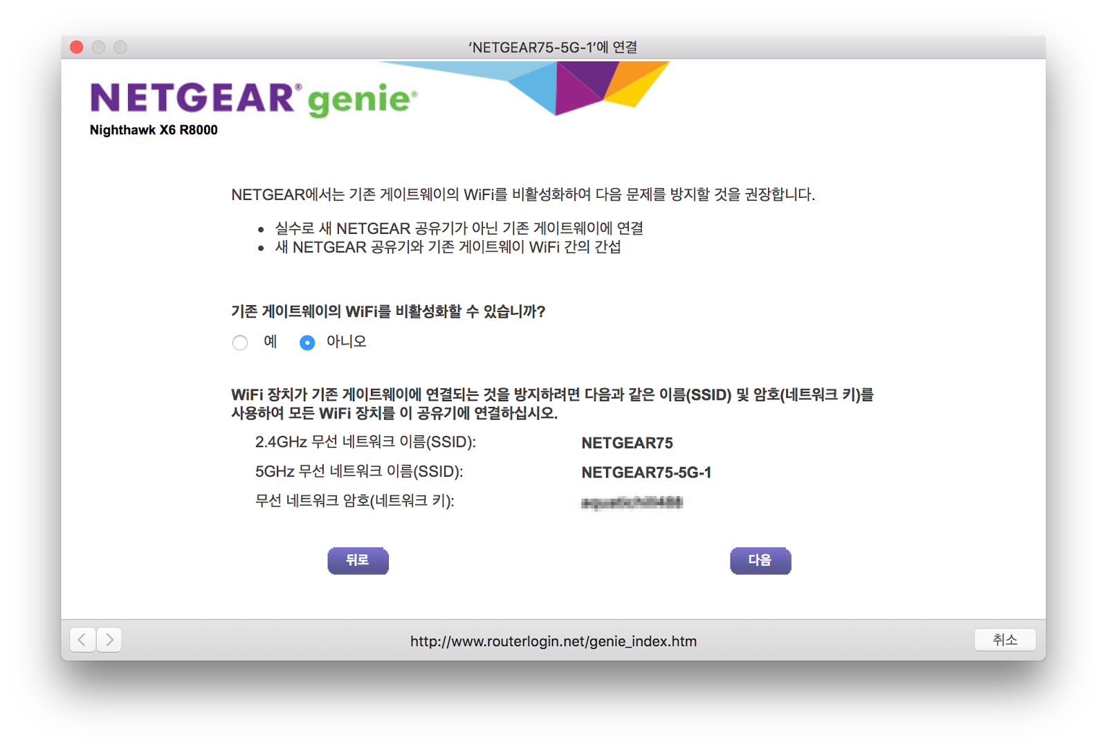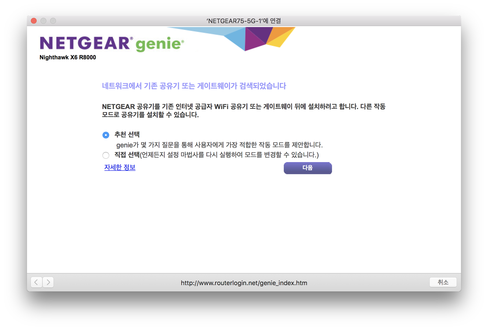 다른 유무선 공유기와 달리 연결하는 순간 바로 설정이 나타나기 때문에 처음 시작점부터가 달랐던 NETGEAR R8000.