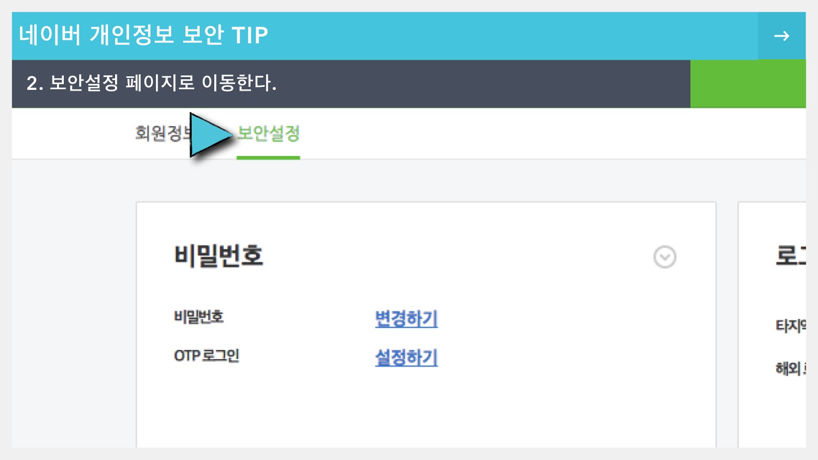 그 점은 한국인이 가장 많이 이용하는 네이버 아이디 역시 마찬가지일지 모른다. 네이버에는 자체적으로 별도의 보안 설정이 있는데, 보안 설정을 하는 방법을 알지만 안 하는 사람도 있고, 별도의 보안 설정이 있다는 것조차 모르는 사람도 있을 수 있다.