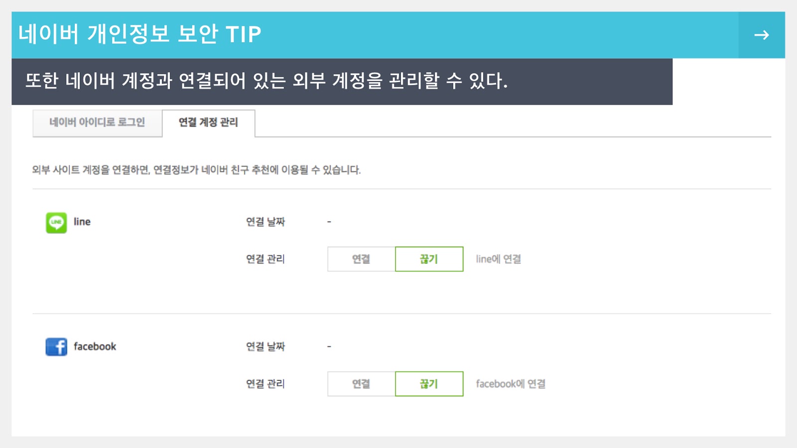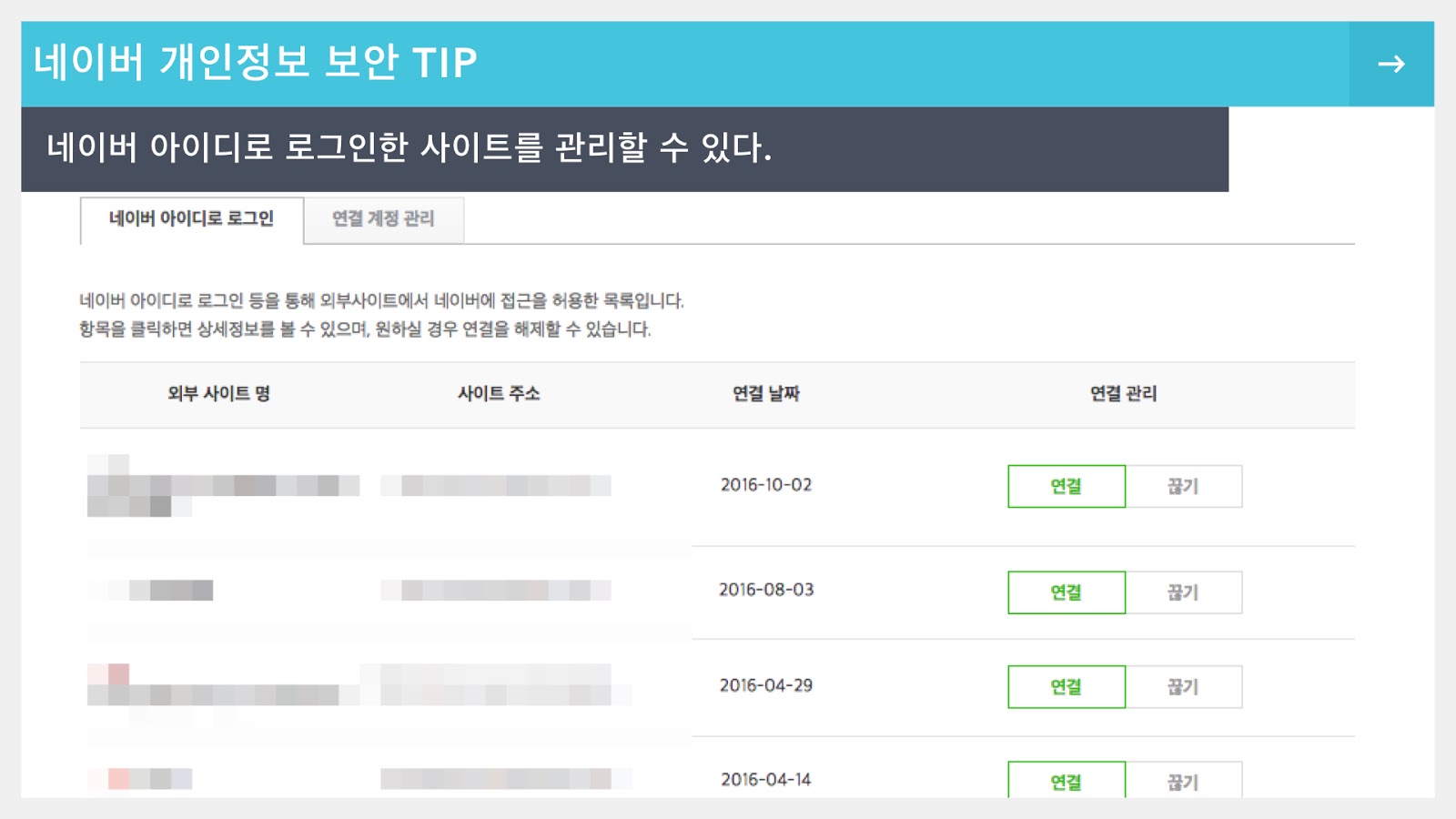 네이버 계정을 이용해 로그인하는 다른 사이트들을 한눈에 확인이 가능하다.