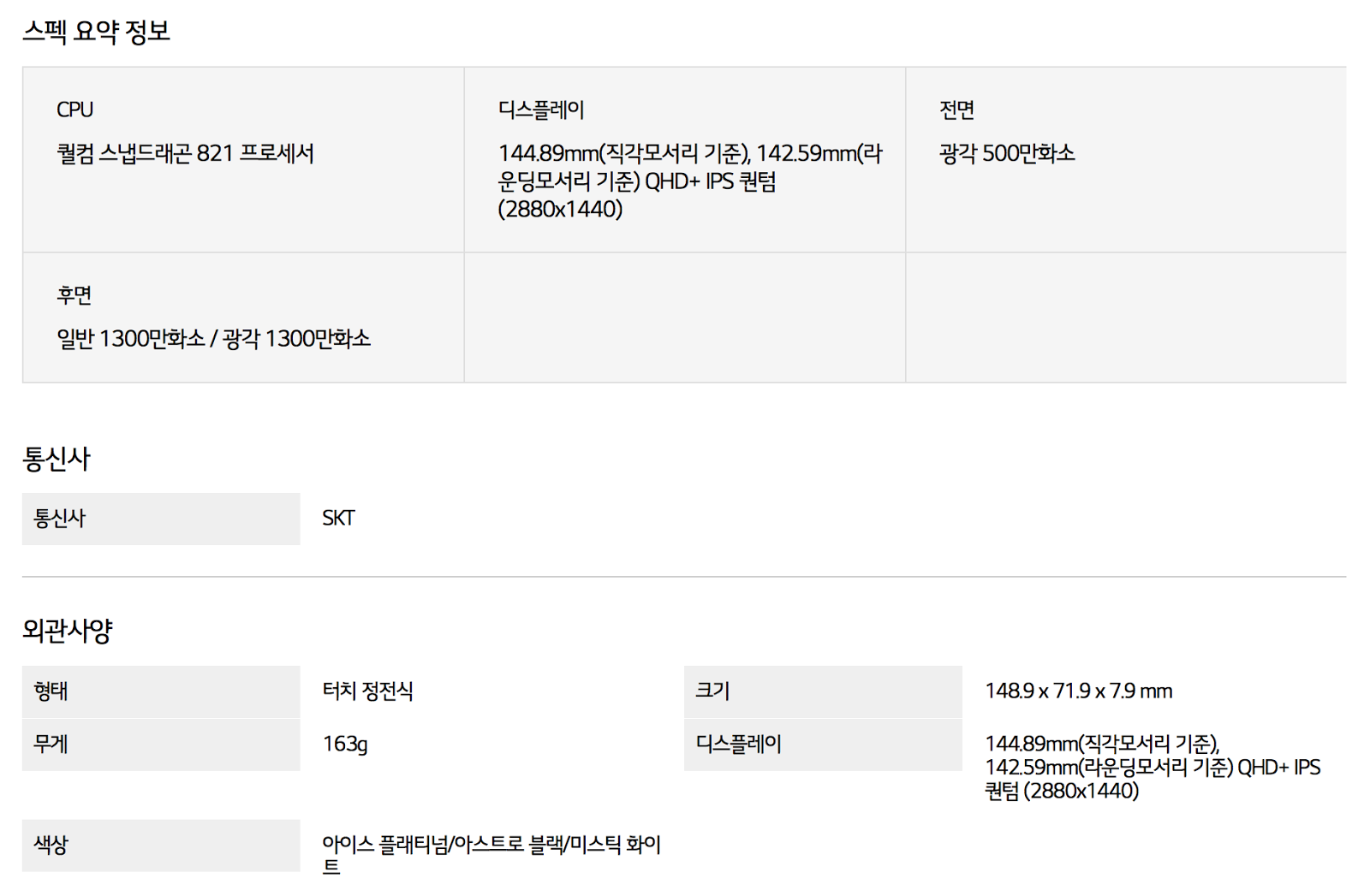 마지막으로 G6의 스펙을 보자면 다소 특이한 점을 발견하게 된다.