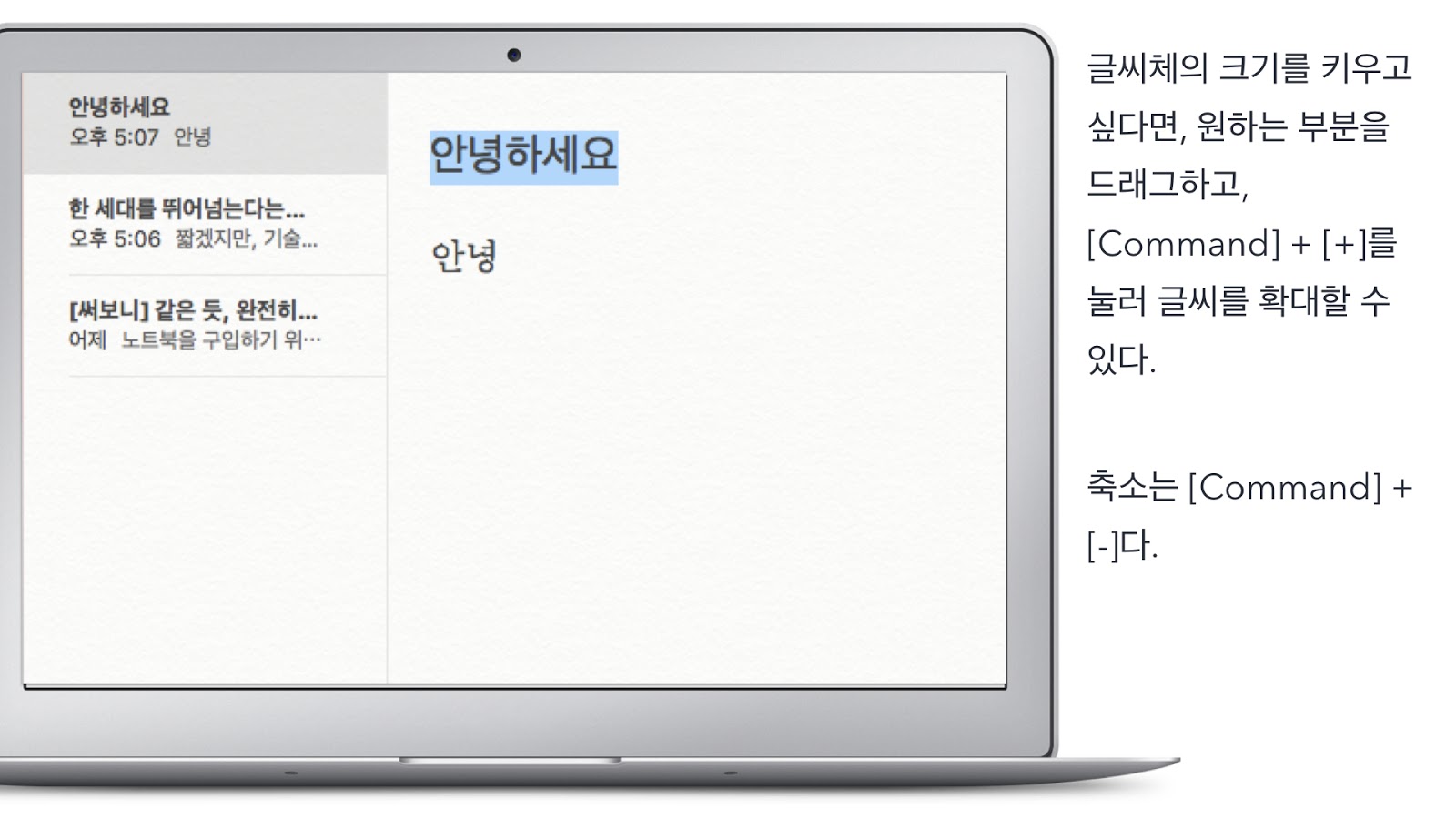 말 그대로 메모를 하기에는, 또는 간단한 타이핑 작업을 하기에는 충분하고, 또 구성이 간단하기 때문에 맥북 초보자라도 메모앱을 쉽게 사용할 수 있을 것이다.