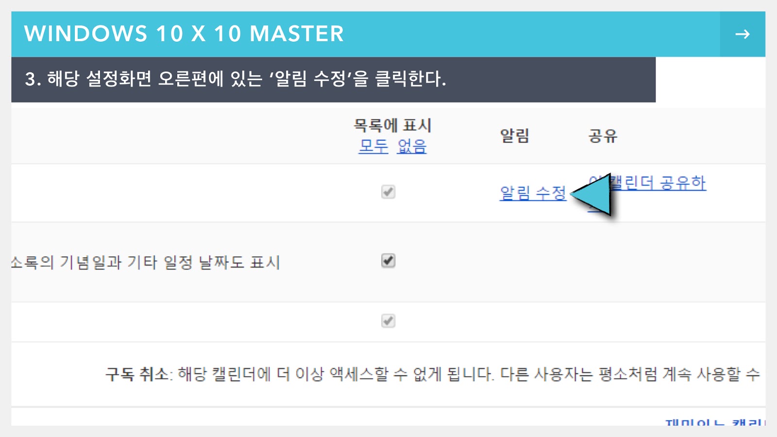 이 설정을 해두면 기존에 알림을 설정해둔 일정도 모두 알림이 취소된다.