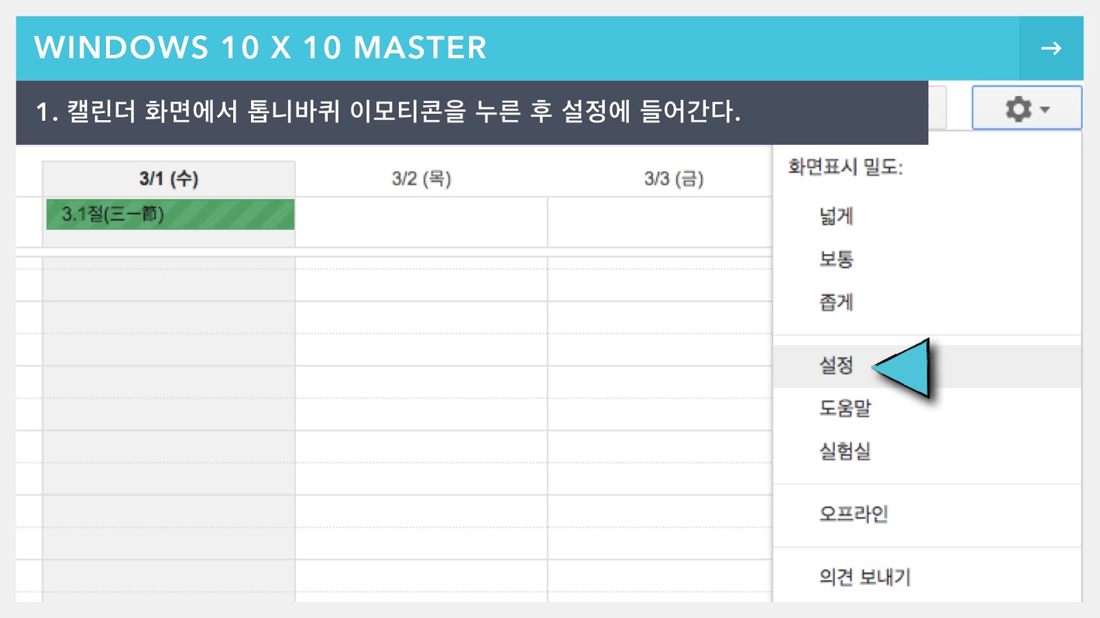 그리고 자신에게 필요한 설정이 있는데도, 그러한 설정이 있는지 몰라 사용하지 못했다면, 이번 기회에 어떤 설정들이 있는지 둘러보고, 캘린더를 더 효율적으로 사용해보도록 하자. - MACGUYVER.