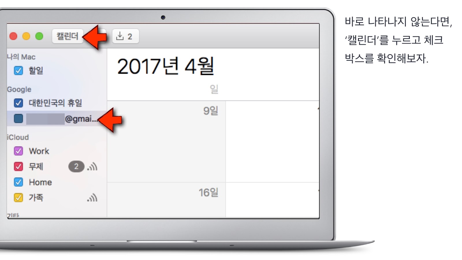 이 방법을 이용하면 자신의 구글 계정뿐 아니라 여러 사람의 구글 계정이나 애플 계정을 등록해 서로의 일정을 공유할 수도 있으니 활용해보자.