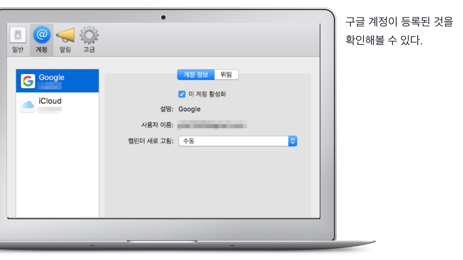 참고로 굳이 구글 캘린더를 맥북의 캘린더에 가져오는 이유는, 맥북의 캘린더를 구글 캘린더에 동기화시키는 것이 상대적으로 더 어렵기 때문이다.