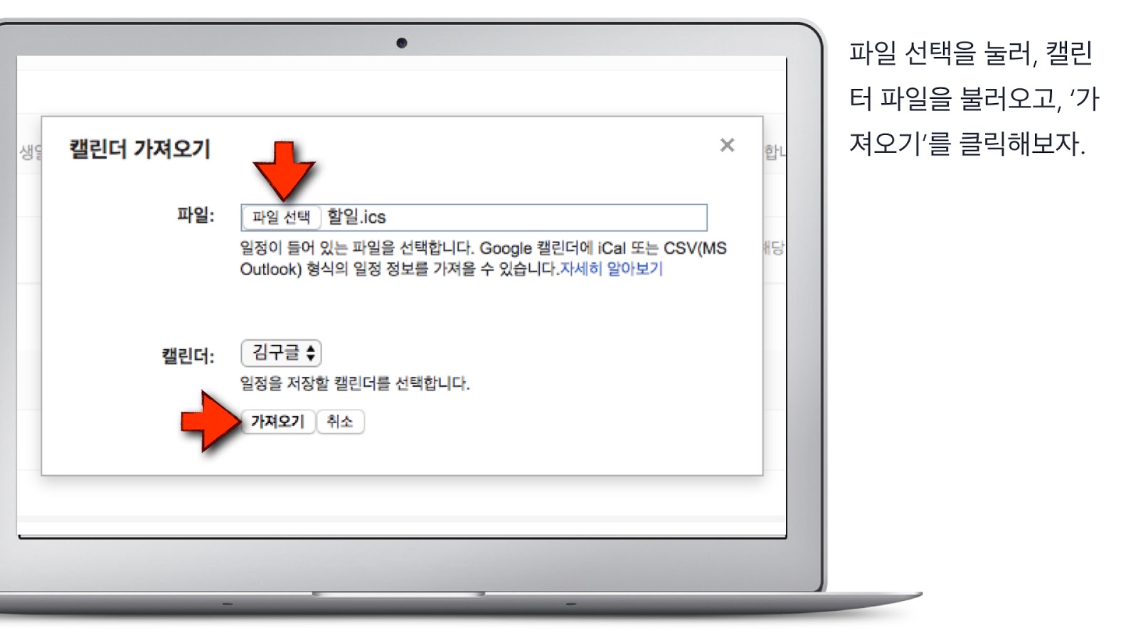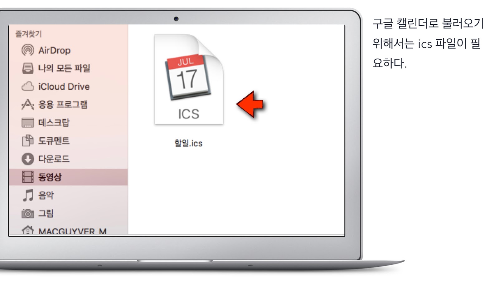 반면, 종종 구글 계정이 아닌 애플 계정에 작성해둔 일정을 구글 캘린더에 옮겨야할 때가 있다.