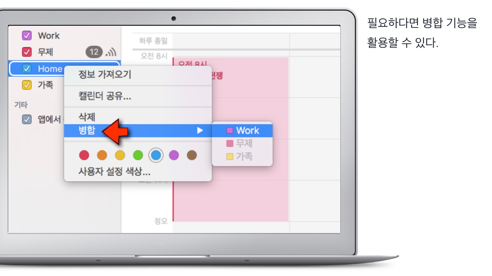 맥북에서 편집하는 구글 캘린더는 한 구글 계정 내에서는 여러 카테고리로 정리할 수 없다.