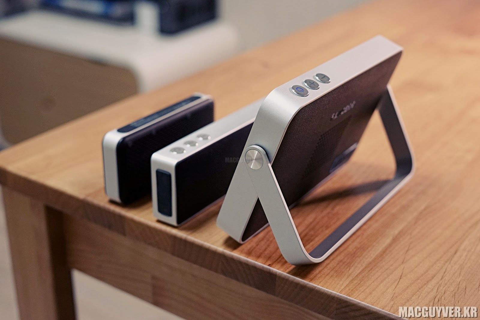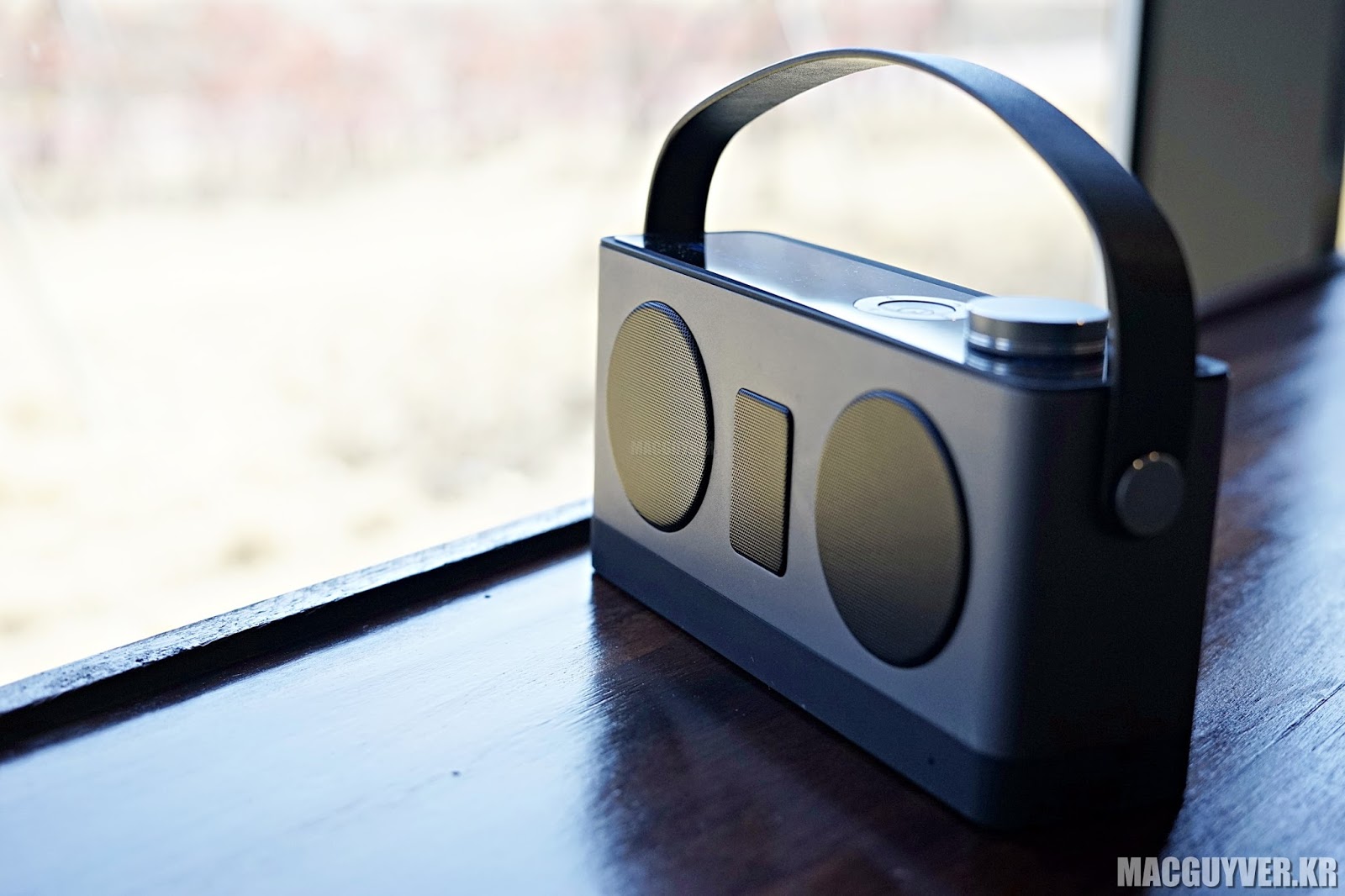 우선 다소 큰 사이즈와 540g 정도의 무게를 가지고 있지만, 360도로 돌아가는 손잡이를 통해 휴대성을 놓치지 않았고, 이 손잡이가 거치대 역할을 동시에 수행하기 때문에 원하는 방향으로 풍부한 사운드를 뿜어낼 수도 있다.