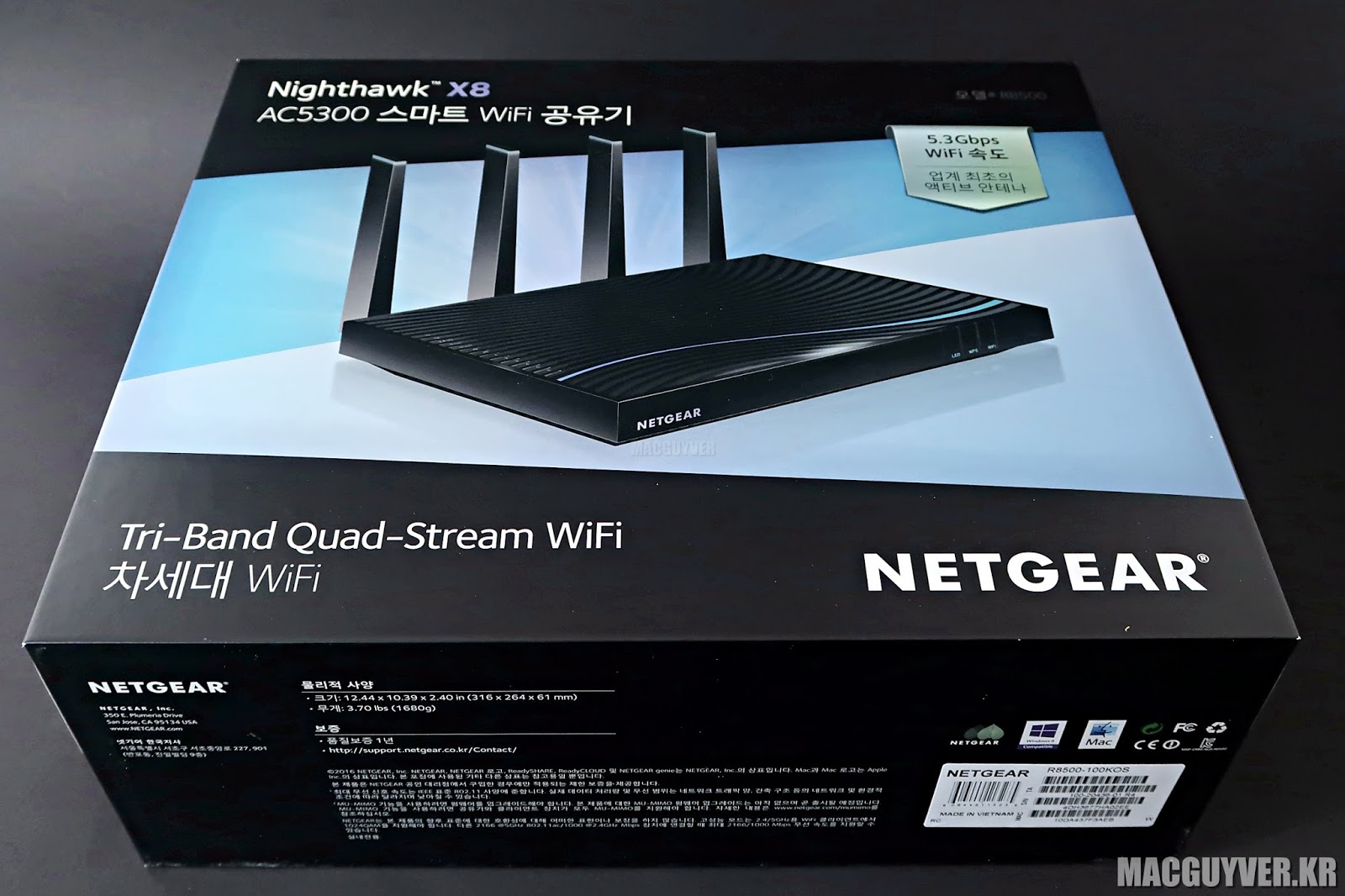 최대 5.3Gbps의 빠른 속도를 지원하는 차세대 기가비트 공유기인 넷기어 R8500은 트라이 밴드를 통해 안정적인 속도와 긴 커버리지를 제공하고 있었고, 40~50평이 넘는 넓은 집이나 사무실에도 전천후로 사용할 수 있는 단 하나의 와이파이 공유기로 충분한 매력이 있는 제품이 아닐까 싶었다.