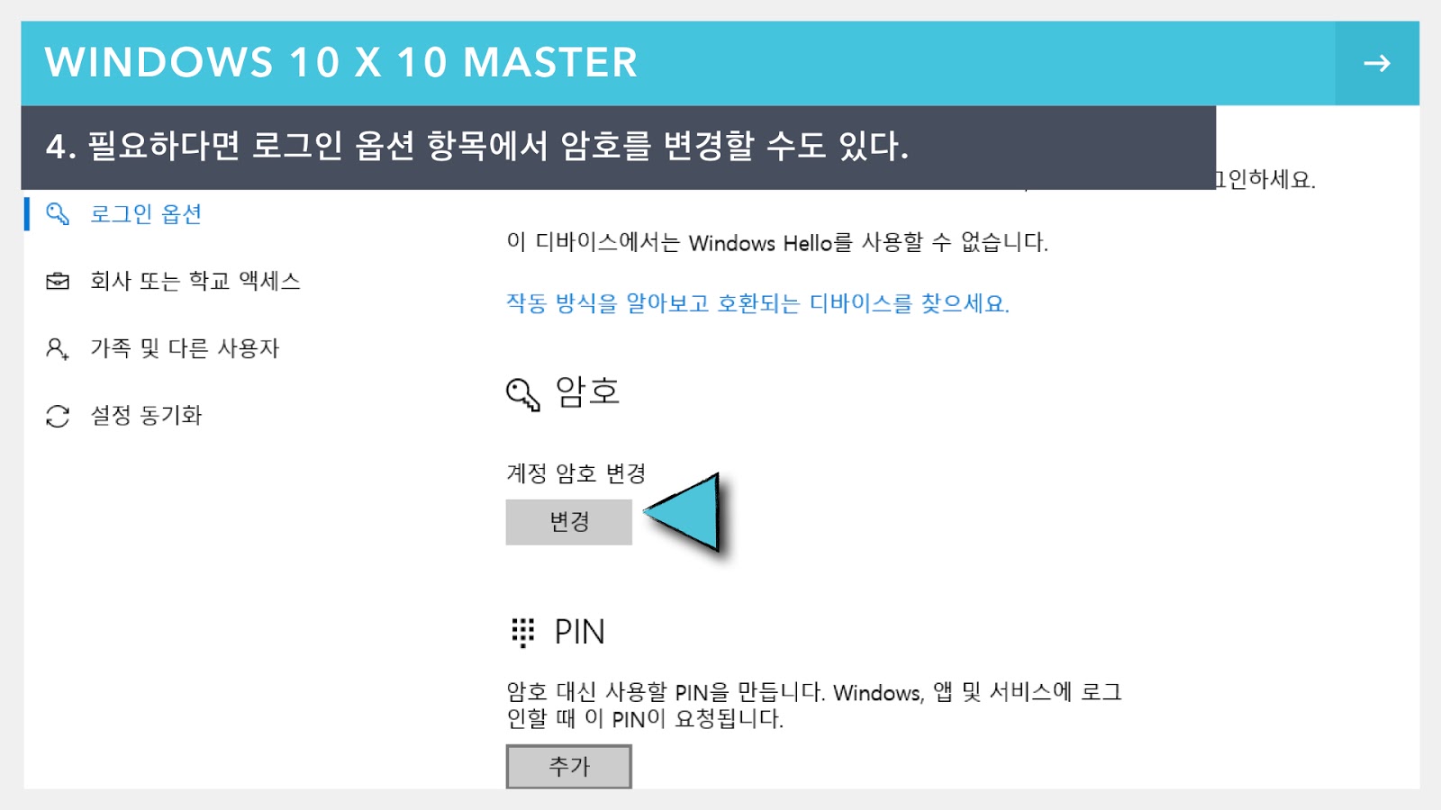 만약 그런 경험을 자신의 컴퓨터에서 종종하게 된다면 ‘PIN(핀)을 등록해두는 것도 좋은 방법이다.