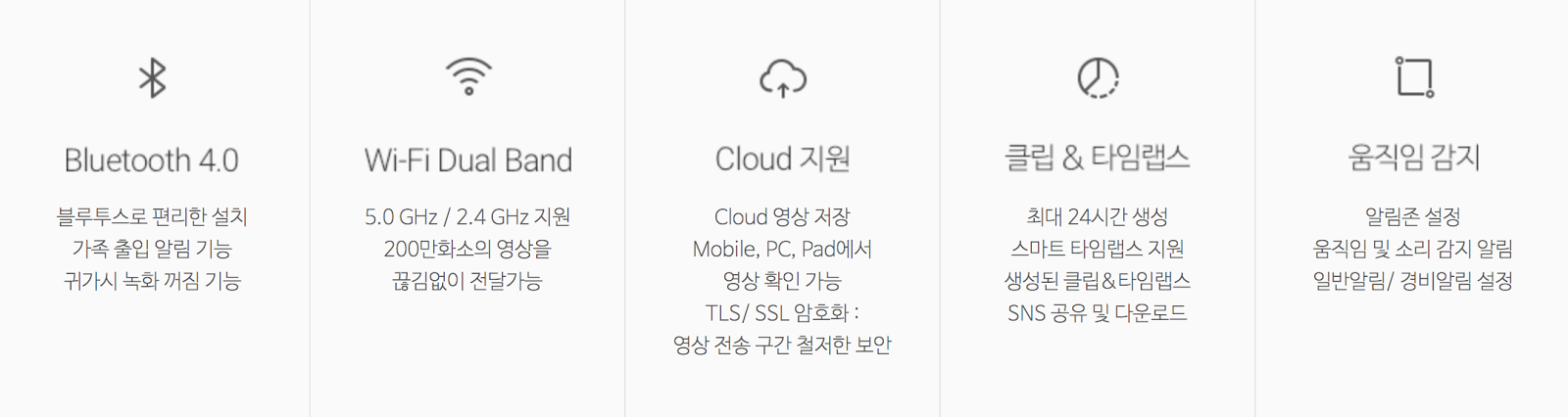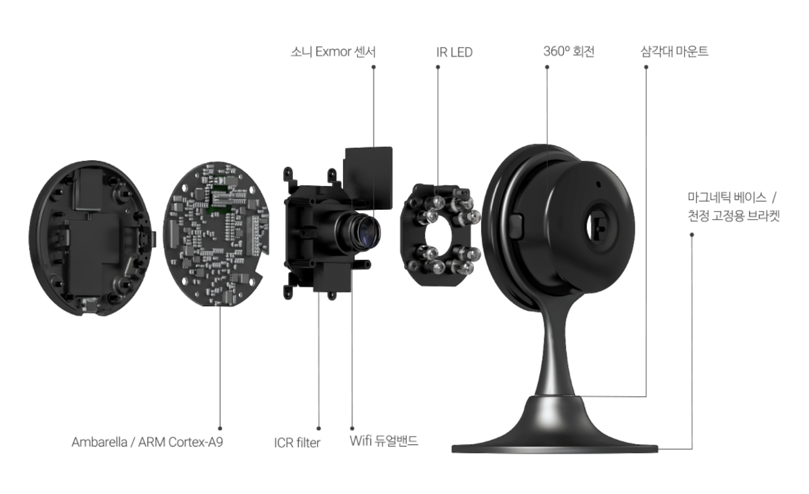 좁은 방에 설치하더라도 사각 지대 없이 마음껏 넓게 촬영하는 것도 가능했고, 무게 또한 180g으로 가벼웠기 때문에 벽면에 부착하는 일 역시 어렵지 않았다.
