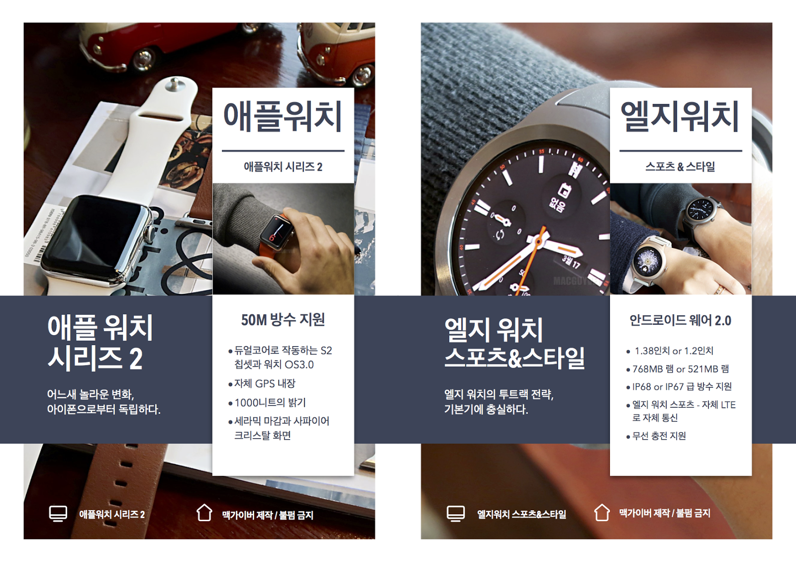 스펙이나 컨셉으로는 어느덧 완성형에 가까워진 두 스마트워치, 차기작이나 차기 운영체제 업그레이드를 통해서 소비자들이 꼭 사용해야 할 만한 매력적인 요소를 더해준다면 선택의 이유가 조금은 더 명확해질 것 같았다. - MACGUYVER.