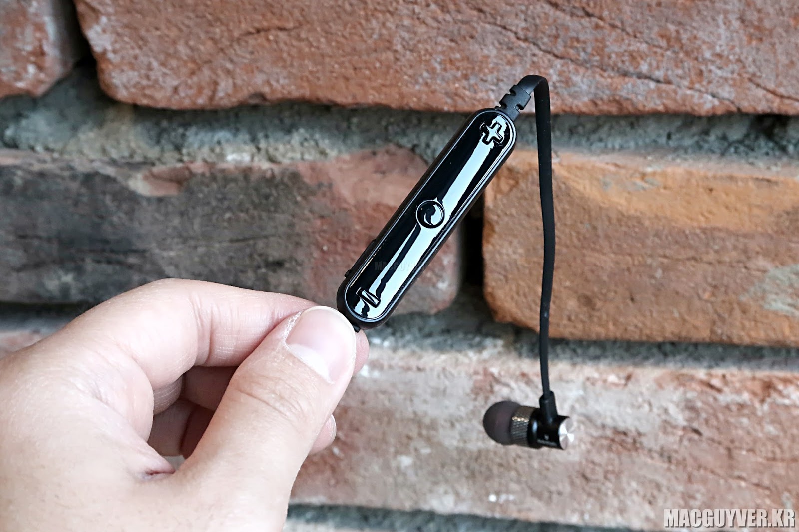 하지만 실제로 착용해본 결과 상당히 가벼울 뿐 아니라 착용감도 좋았는데요. 다만, 컨트롤러가 꽤 큰 편이라 컨트롤러가 목 앞쪽에 있을 때 역동적으로 움직이면 오른쪽 이어폰이 빠지기 때문에, 격한 운동을 할 때는 컨트롤러를 목 뒤로 넘겨야만 안정적으로 사용할 수 있다는 점은 개인적으로 가장 큰 아쉬움이 아닐까 싶었습니다.