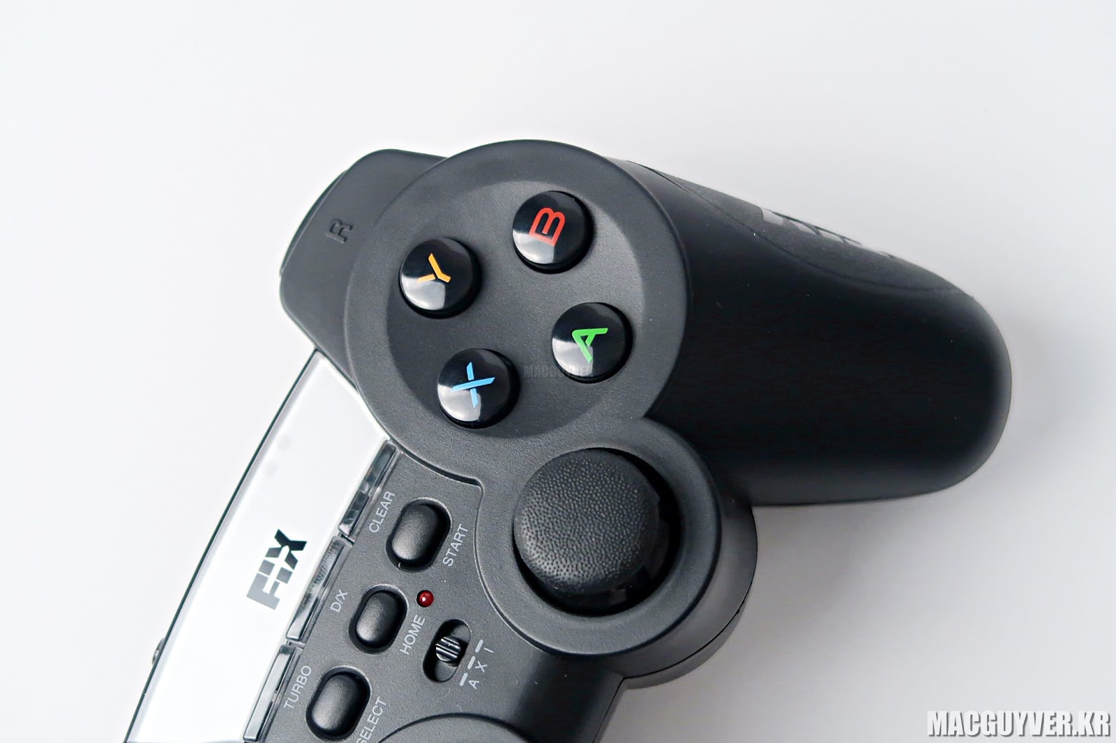 픽스 게임 패드에는 익숙한 조이스틱과 방향 키패드, 4개의 특수키를 비롯해 다양한 버튼들이 자리잡고 있습니다.