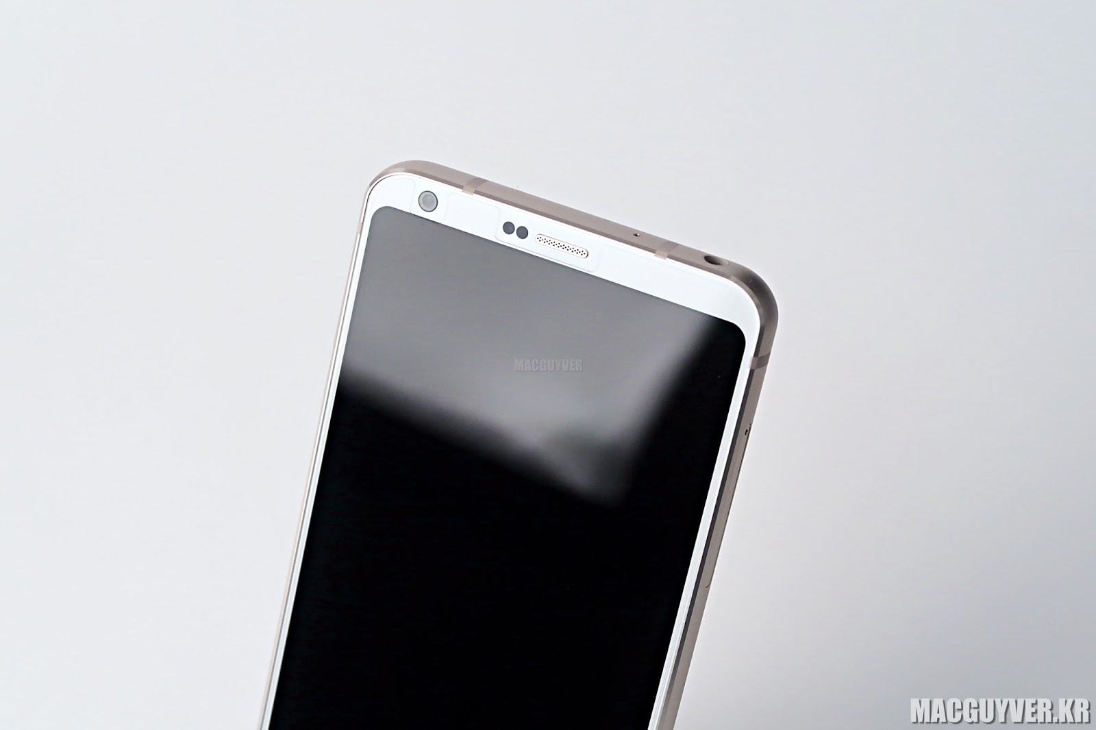 골드, 아니면 로즈 골드로 보이는 측면의 은은한 컬러감이 G6 미스틱 화이트를 완성한 것으로 보였습니다.