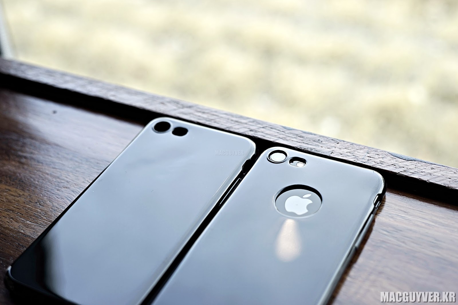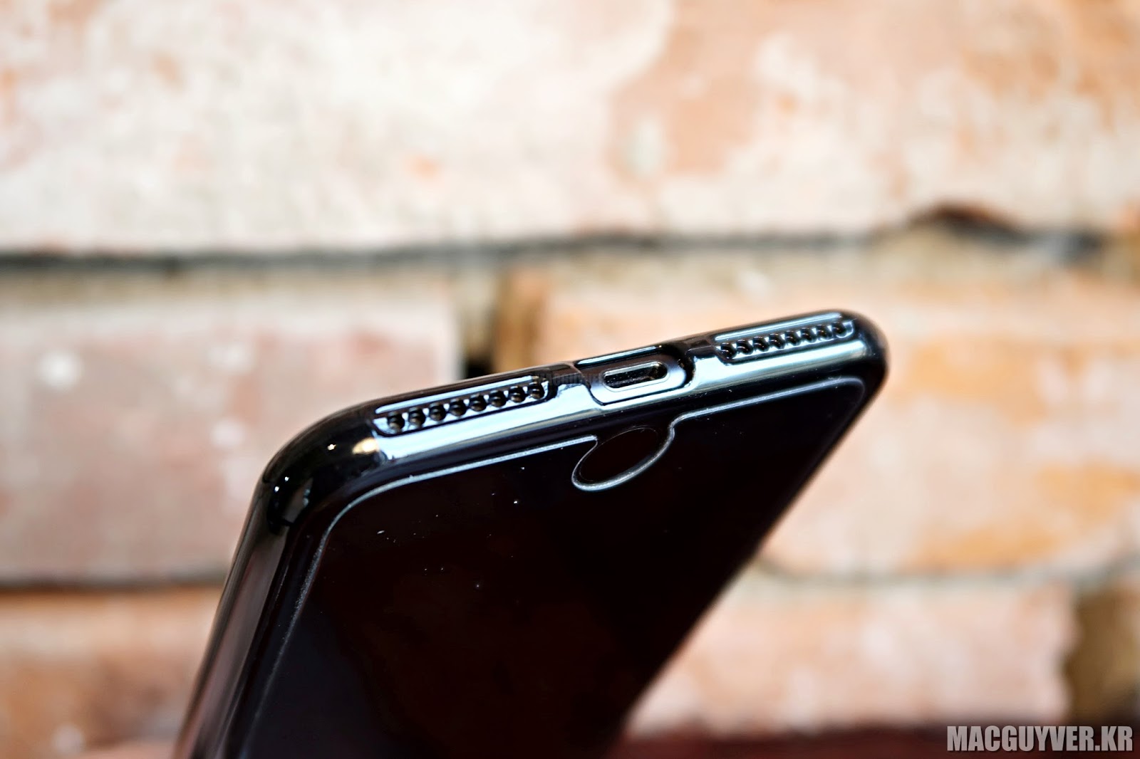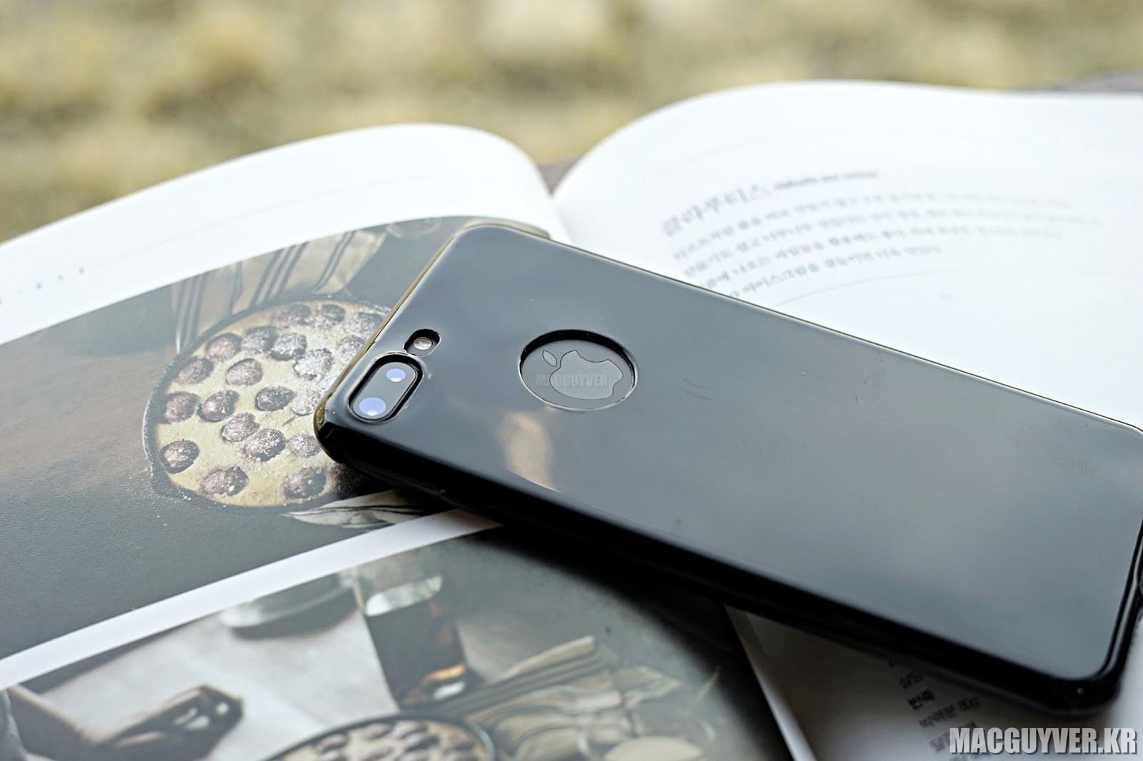 물론 실제 아이폰7의 색감과 손맛과는 다소 차이가 있을 수밖에 없지만, 그 점에서 행폰 케이스는 실제 제트 블랙의 그것을 흉내 내기 위해 상당히 노력한 것을 느낄 수 있었습니다. 깊이감 있는 블랙에 고광택을 입혀 더더욱 제트 블랙 같은 색감과 손맛을 담아낸 것입니다.