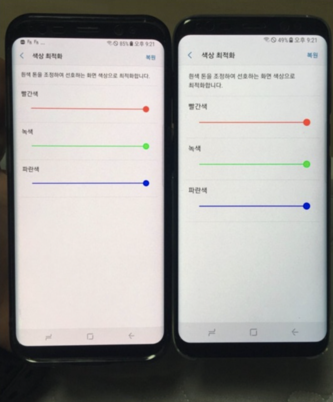 즉, 실제 갤럭시S8의 화면이 붉게 보이는 것보다 더 붉은색으로 보일 수 있다는 것.