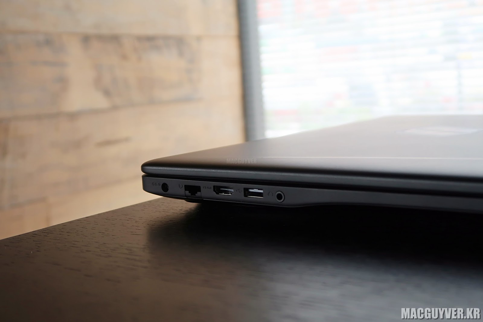 다만, USB-C 타입 커넥터를 통해 좌우 단자 모두에서 전원 코드로 사용이 가능한 요즘의 트렌드와는 달리 일반적인 노트북 충전 단자를 그대로 채택해서 왼쪽에서만 전원 코드의 연결이 가능한 부분은 때때로 불편함이 있을 것 같다는 점에서 아쉬움이 되기도 했습니다.