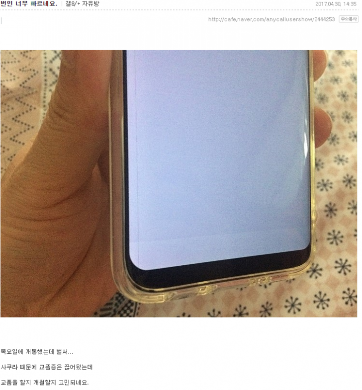 특히나 이번 문제는 대부분 초기에 이슈가 된 만큼 대다수가 초기 구매자들, 즉 예약 구매로 갤럭시S8을 구입해준 분들임을 기억해야 한다. 그런 분들이 이러한 이슈를 이야기하는 것은 어떠한 보상을 받겠다거나 갤럭시S8에 대한 불만을 이야기하려는 것이 아니다.