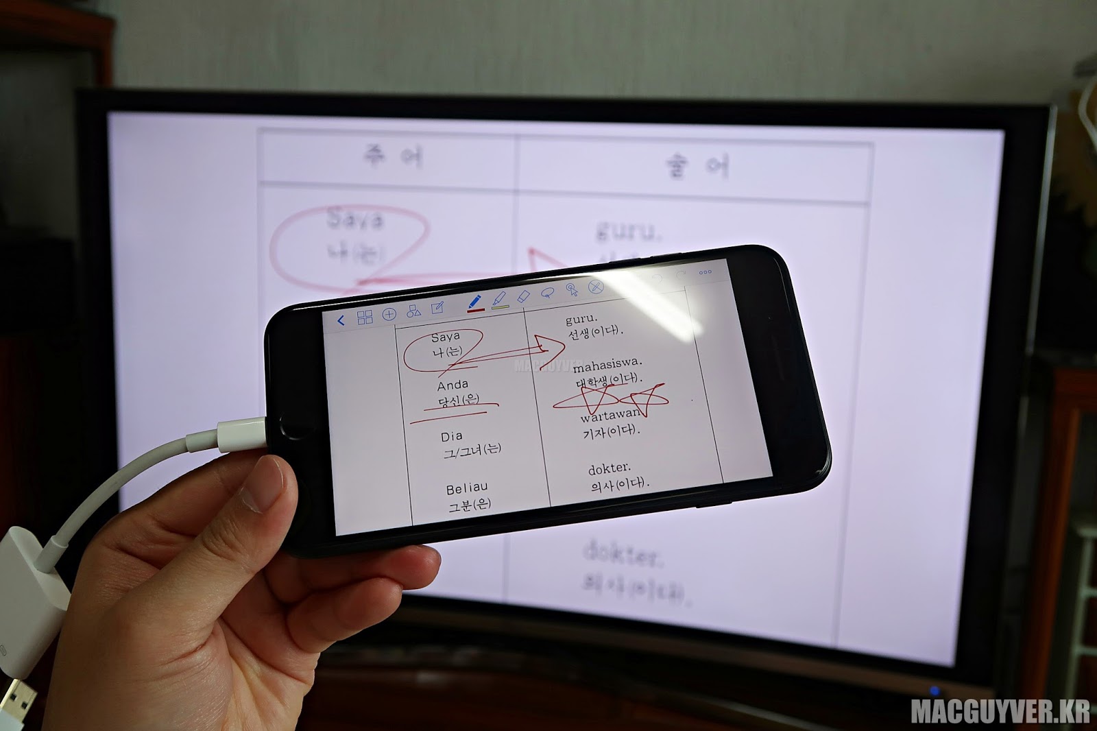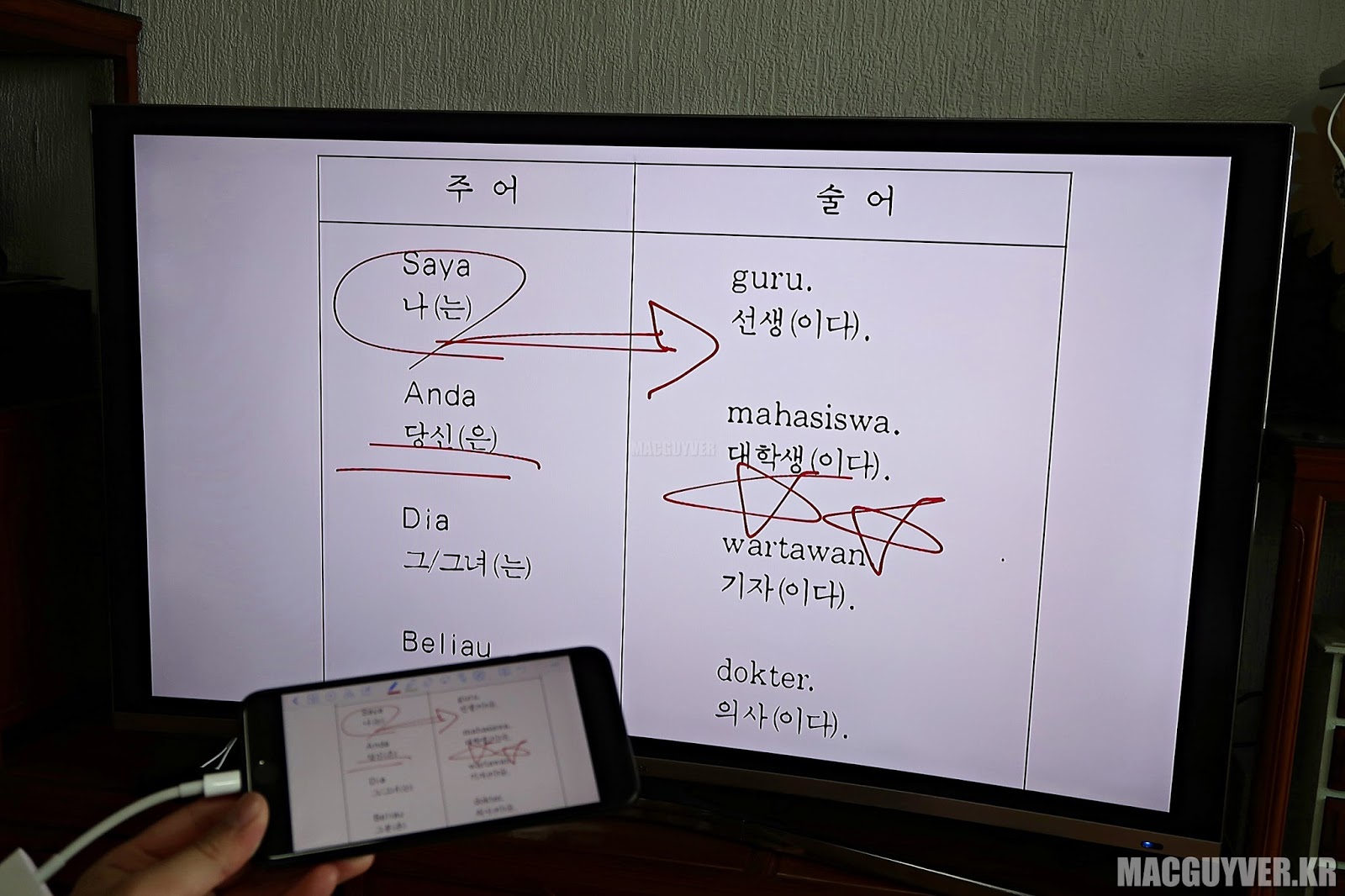 공부를 위해 또한 설명을 위해 아이폰과 연결한 상태에서 다양한 필기를 하고, 화면을 확대 축소하며 사용하는 일도 전혀 어렵지 않았습니다. 오히려 새로운 사용 방법을 알게 되어 더욱 자주 사용하게 되기도 했는데요.