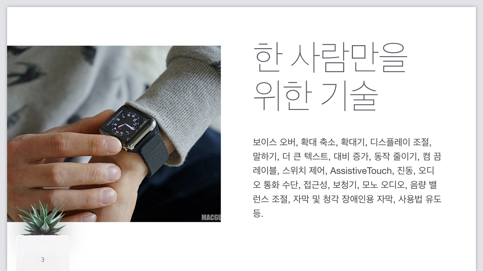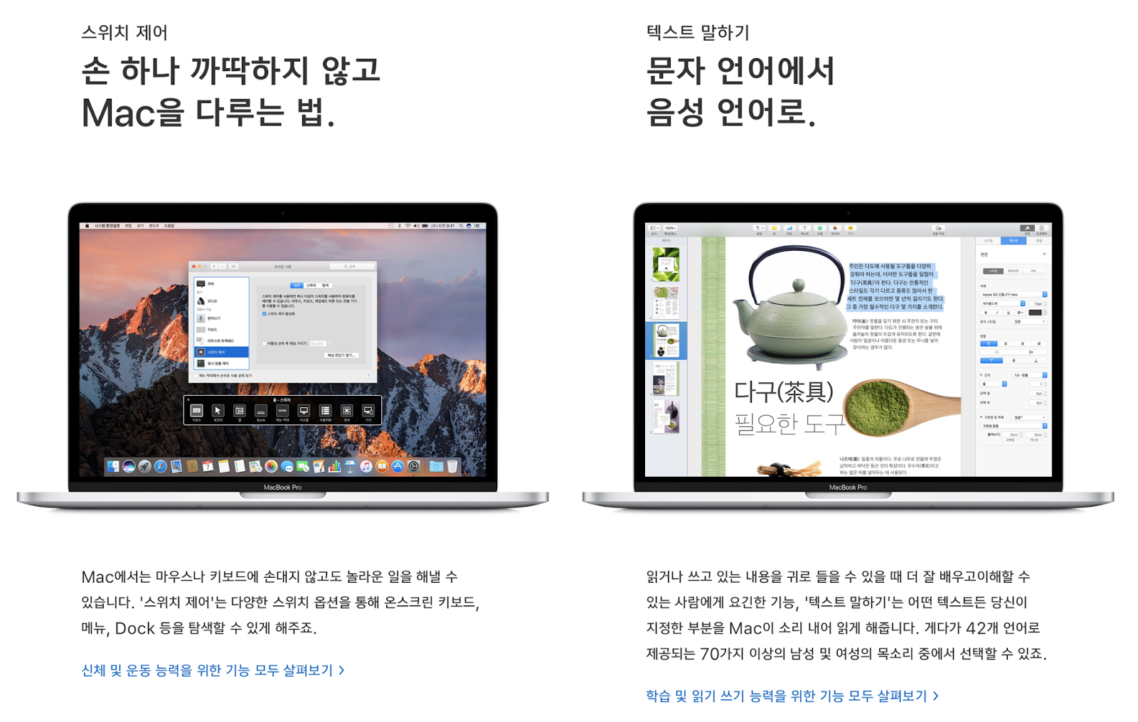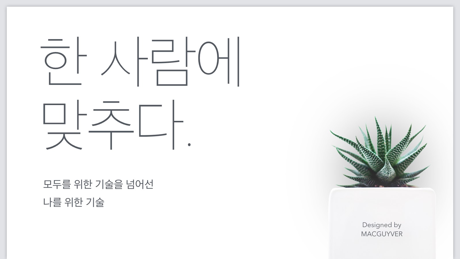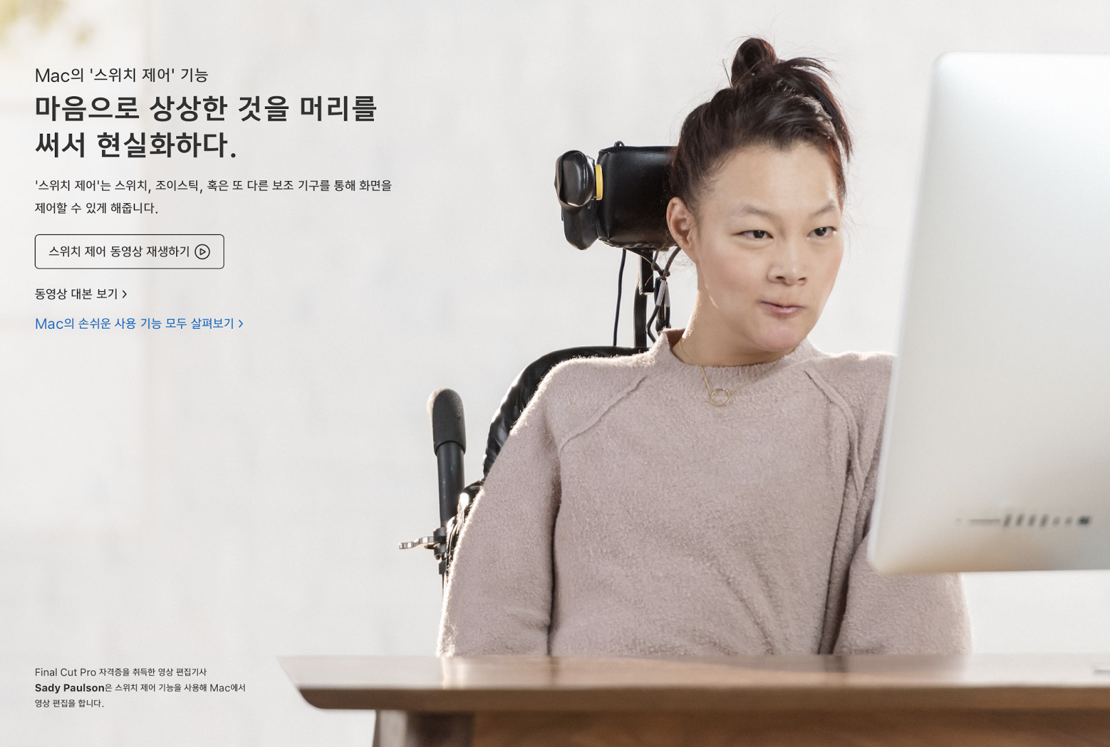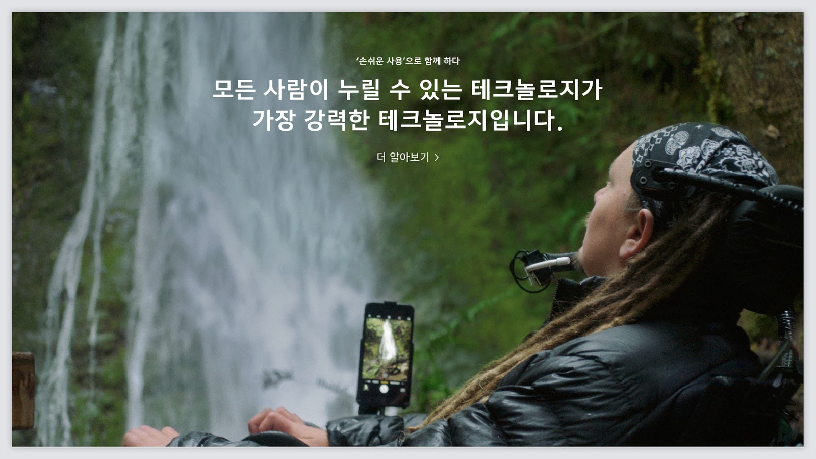 애플이 만들고 제안하는, 그리고 나날이 발전하고 있는 손쉬운 사용 기술은 그 자체로 한 사람을 위해 없어서는 안될 테크놀로지가 되어준다.