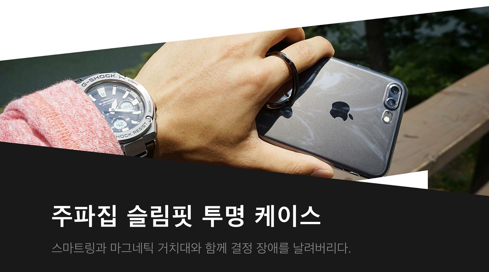 평소에는 생폰으로, 또 원한다면 주파집 아이폰7 슬림핏 투명 케이스로 매끈하고 안전하게, 그리고 거치를 원한다면 주파집 스마트폰링을 활용할 수 있으면서도 차량에서도 주파집 차량용 거치대에 부착해볼 수도 있는 장점이 많은 조합이 된 것 같았습니다.