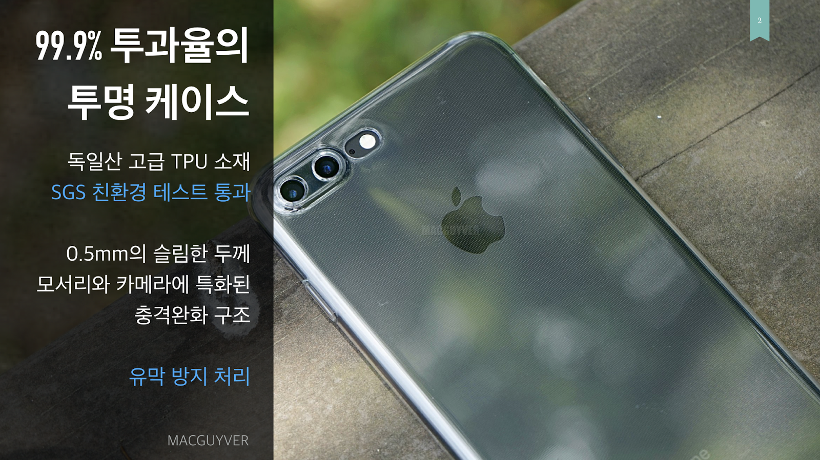 주파집의 투명 케이스는 독일산의 고급 TPU를 통해서 99.9%에 이르는 엄청난 투명성 및 충격을 완화하는 기능, 특히나 테두리의 충격을 방지하는 기능을 품고 있었습니다.