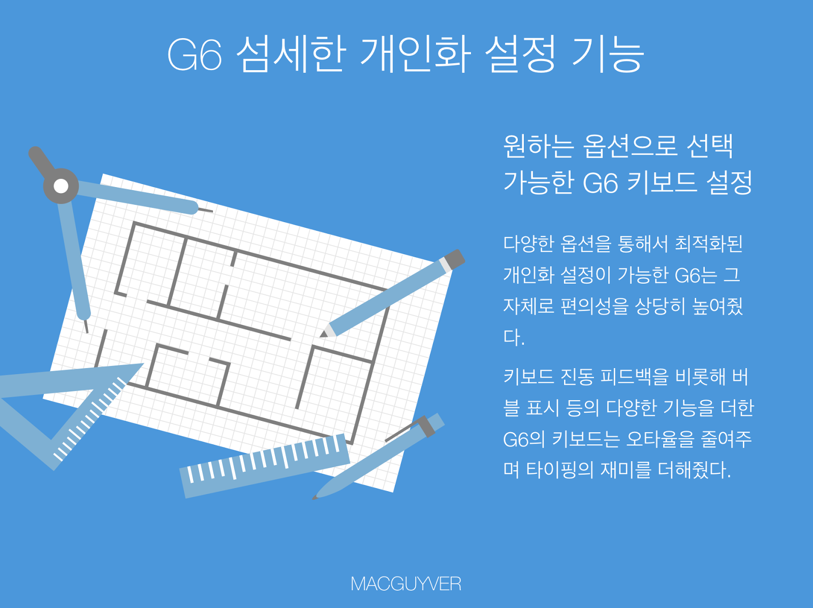 키보드 설정을 하기 이전까지는 G6의 키패드가 상당히 불편하고 옵션도 많이 없다고 생각했었지만, 수많은 옵션 가운데서 원하는 옵션을 선택한 이후부터는 상당히 만족스러운 사용이 가능했다.